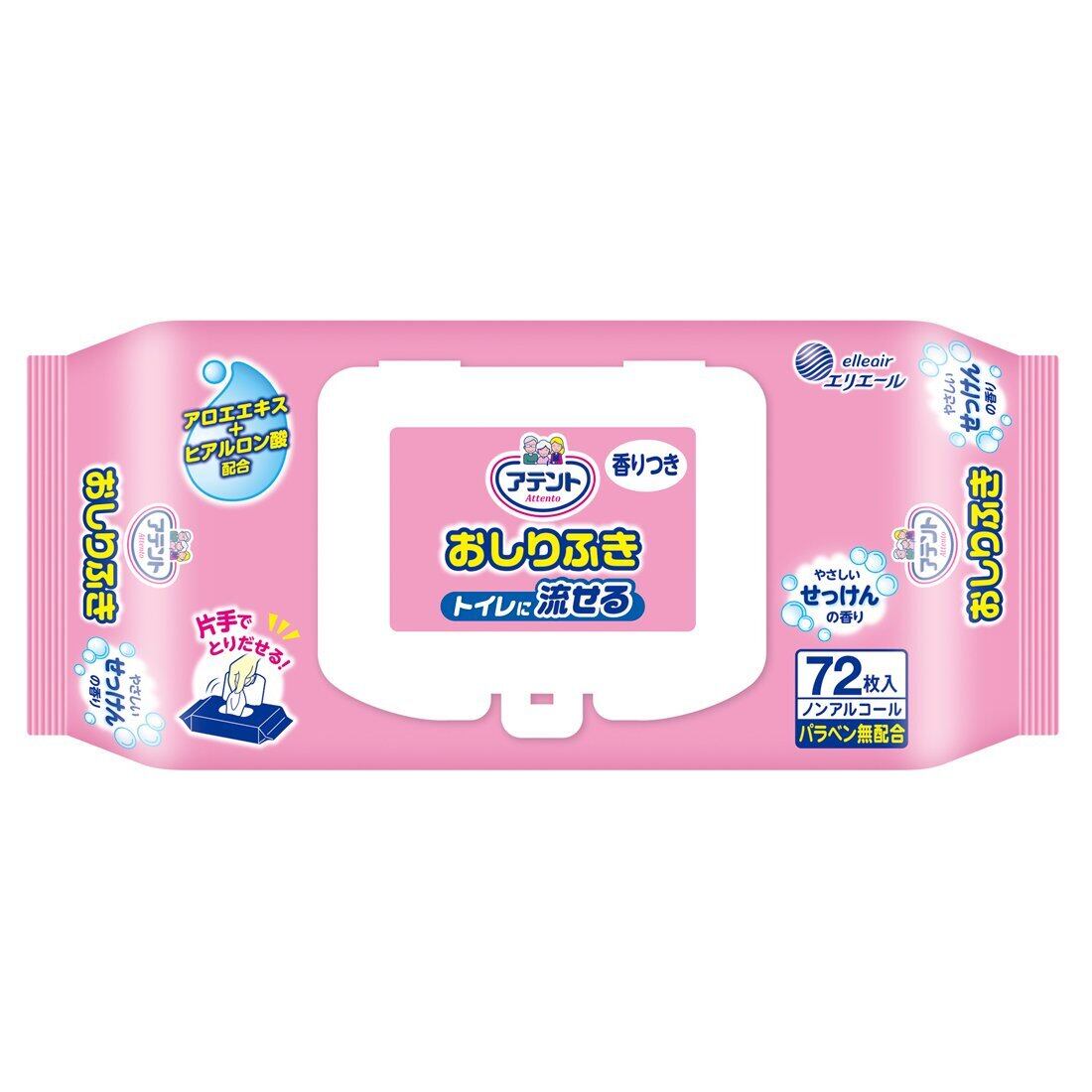 アテント 流せるおしりふき せっけんの香り 72枚 180×200mm