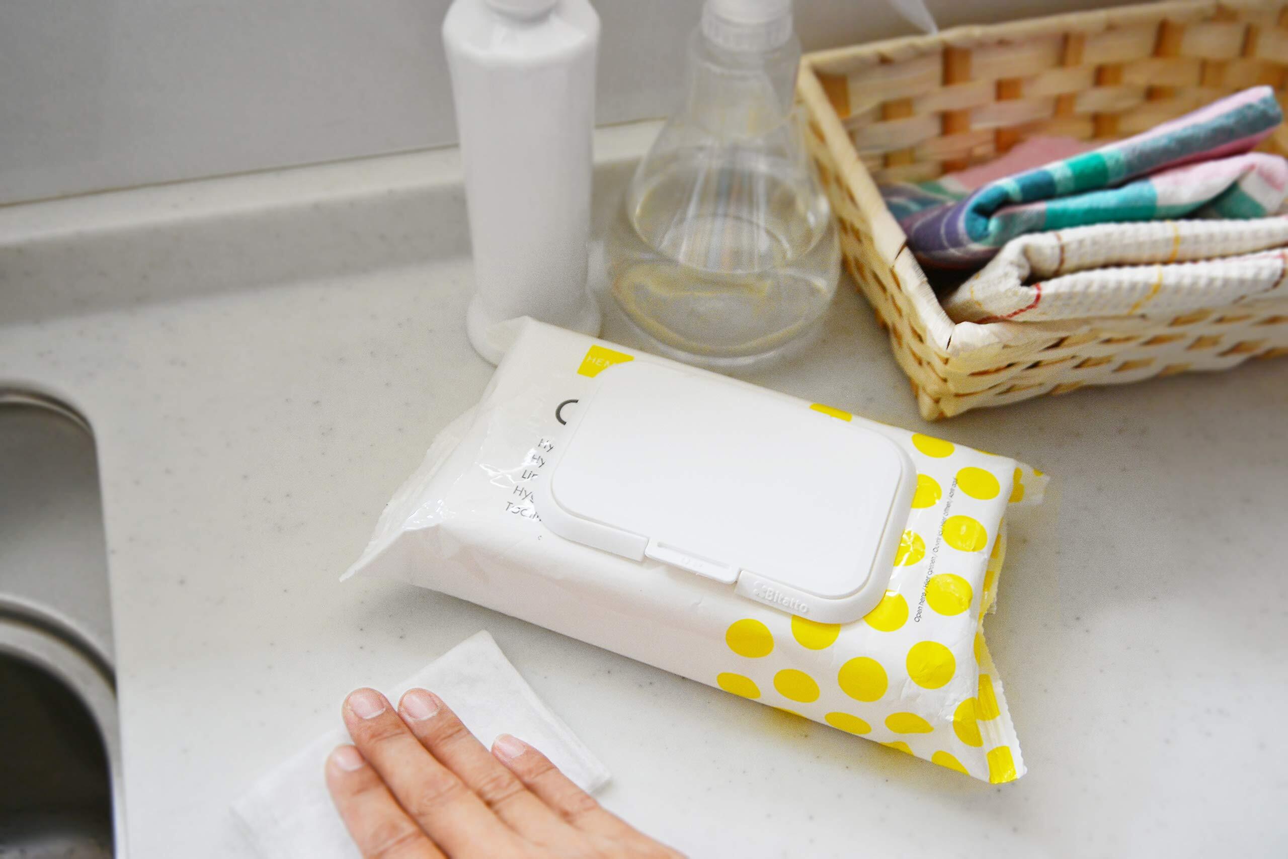 ●ウェットシートの取り口に貼るだけで乾きにくく取り出しやすくしてくれる便利なフタ
