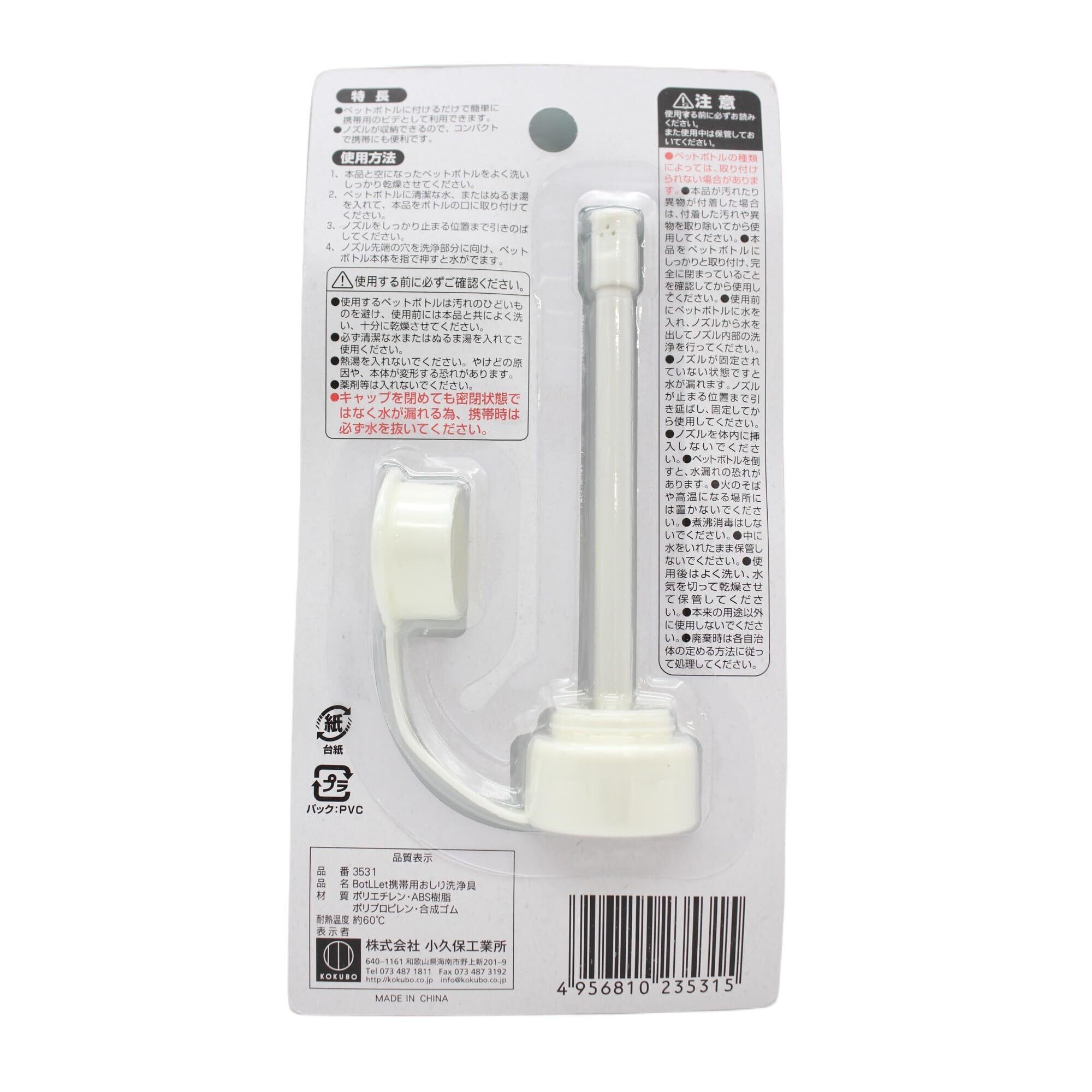 小久保 携帯用おしり洗浄具は、ペットボトルに取り付けるだけで簡単に使用できます。また、ノズルが収納式なので、持ち運びにも便利です。