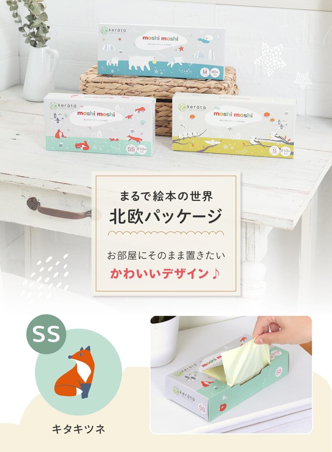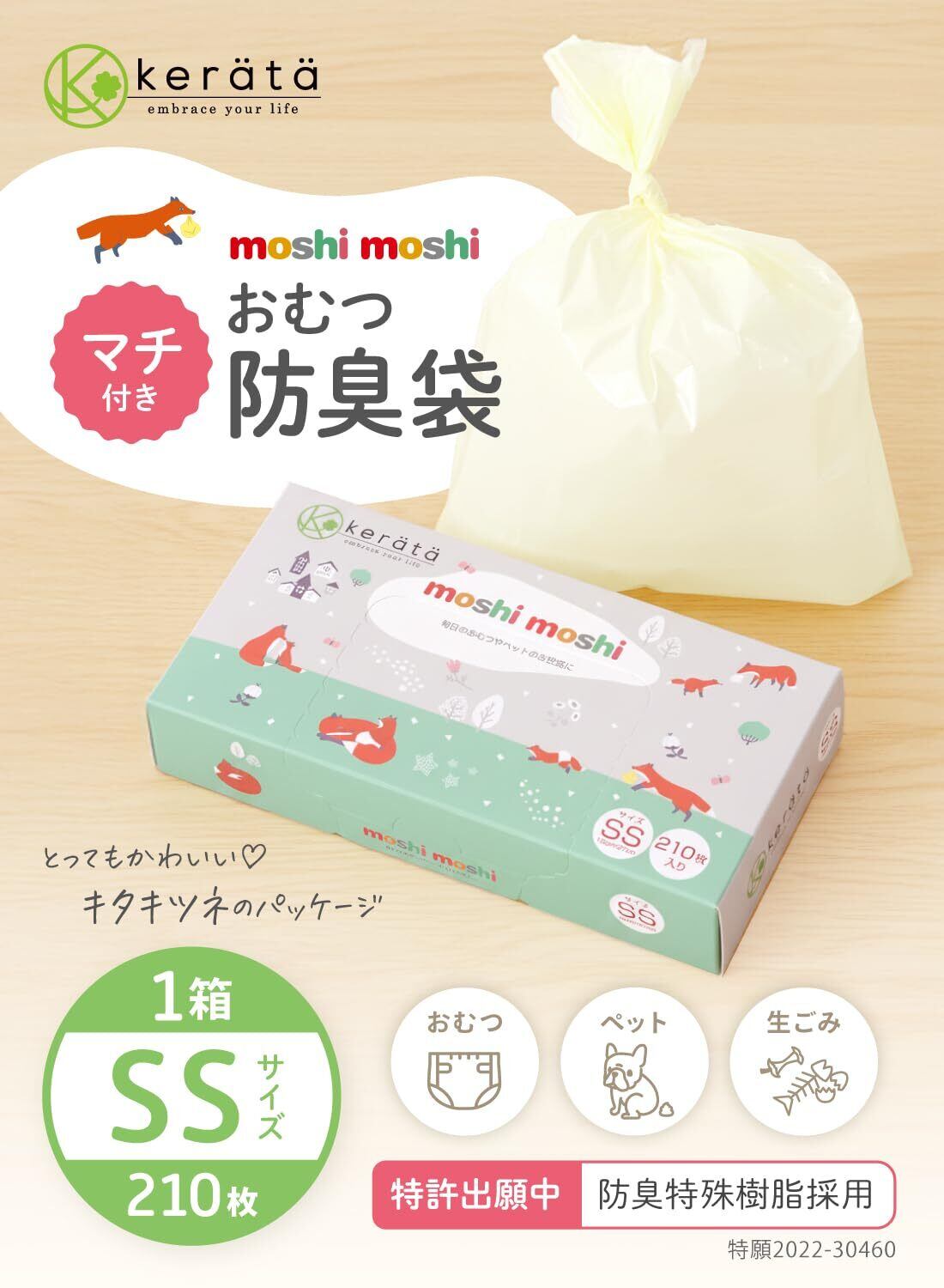 (ケラッタ) moshi moshi おむつ 防臭袋 臭わない袋 【マチ付きでおむつが2個入る】オムツ 消臭 (SSサイズ 210枚入)