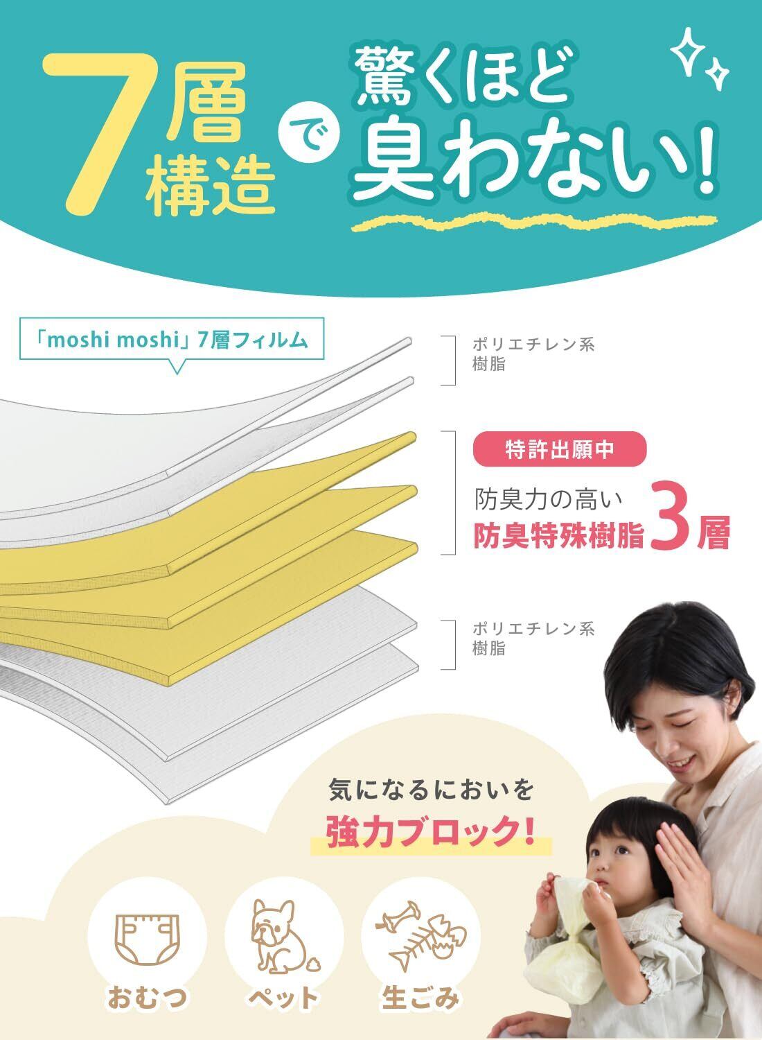 【毎日に使える大容量】 おむつ替えやペットのお散歩など使用頻度の高いこの臭わない袋moshi moshi。使いたいときに手元になかったり、頻繁に買い足すのは大変…。そんな心配が起こりにくい納得の大容量