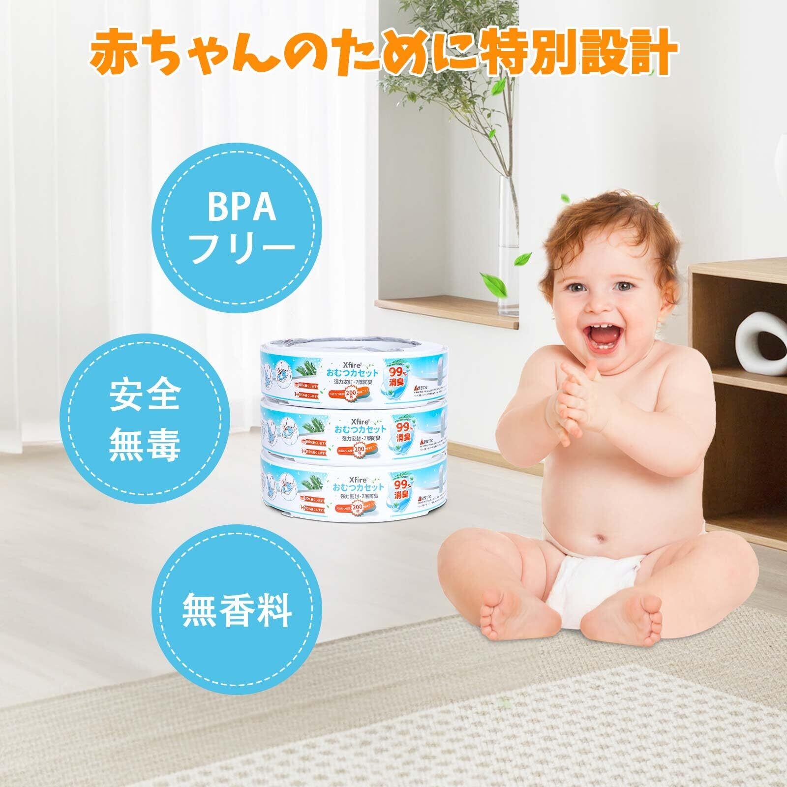容量アップグレード:1つで取り替え用カセット200枚分のおむつを収納でき、従来品よりも大容量を実現しました。リフィルや交換の頻度を減らし、使用期間を延ばすことが可能です。