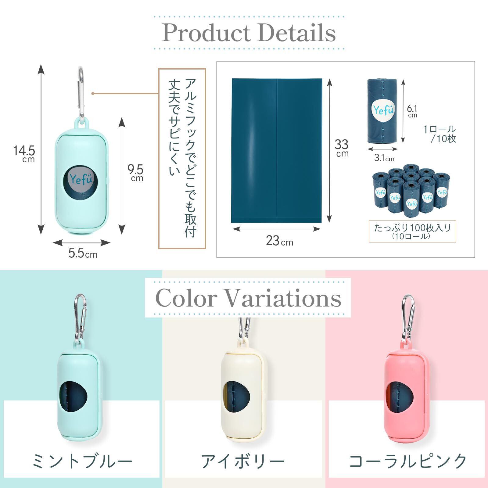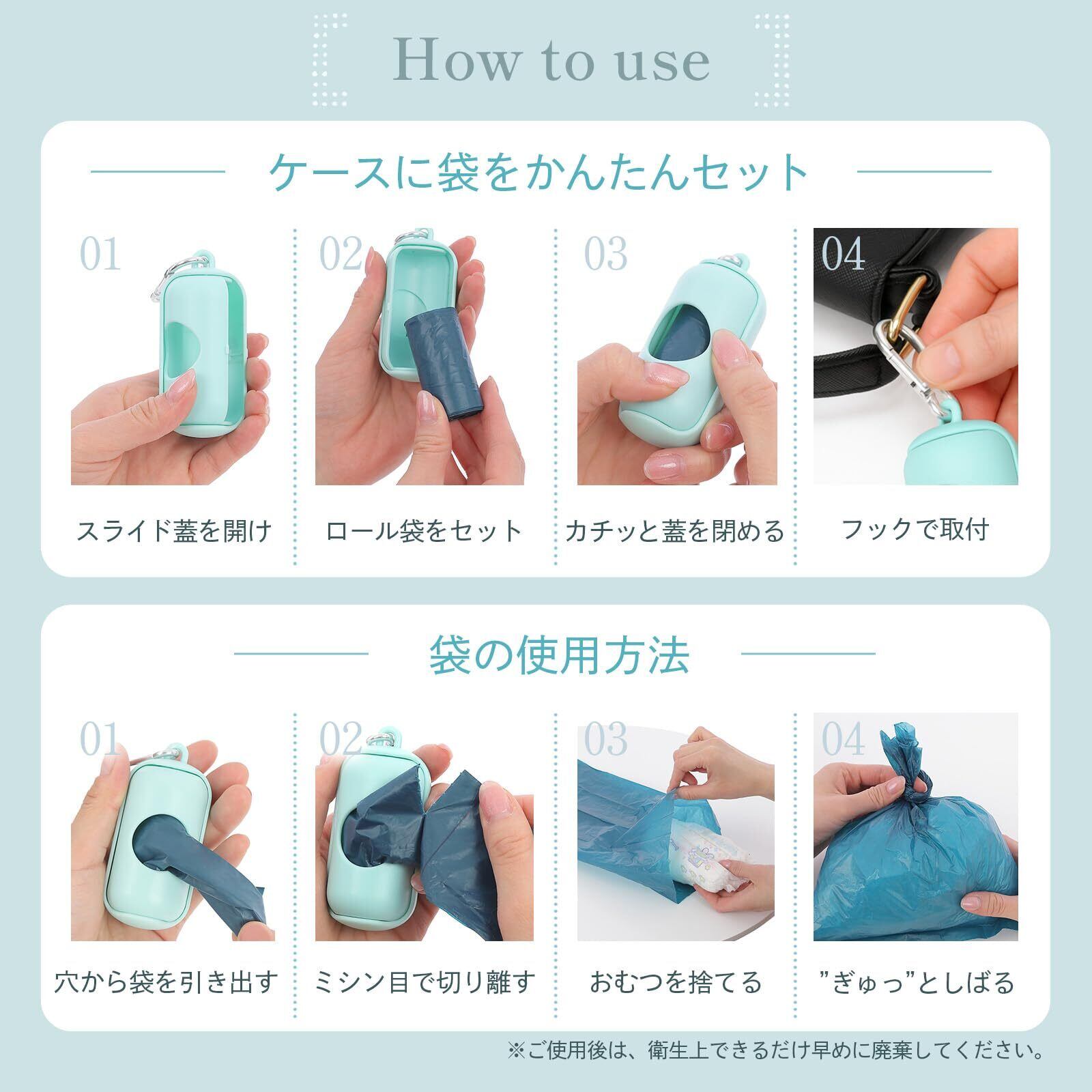 内容量:袋100枚(10ロール)、携帯用ケース1個付き