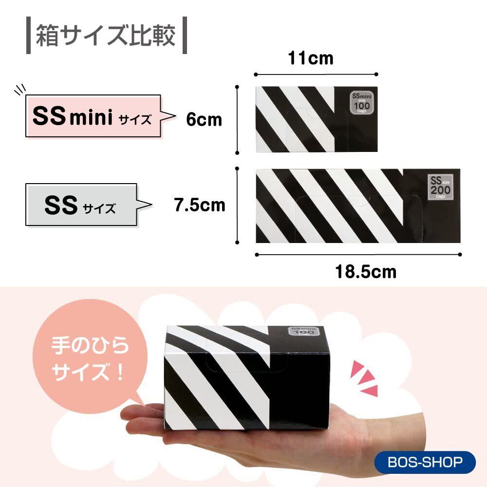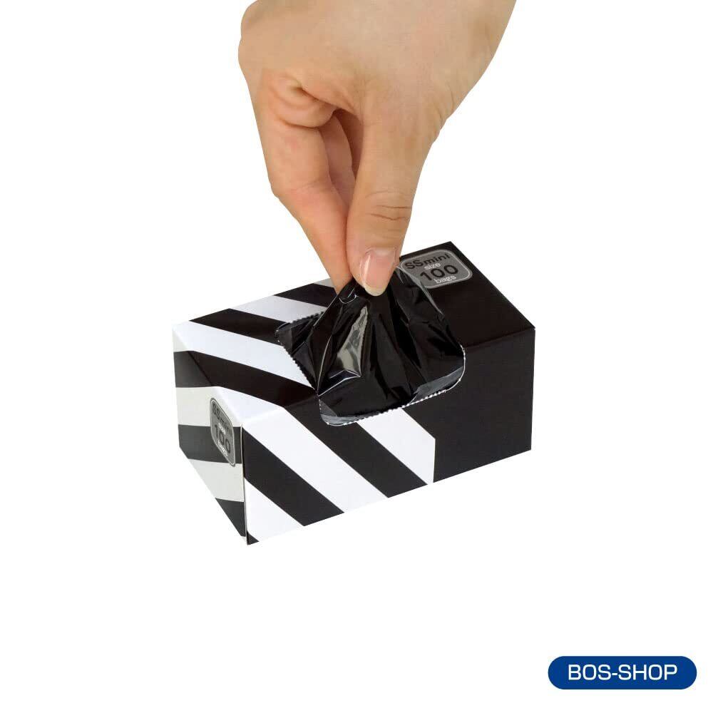 驚異の防臭袋 BOS (ボス) ストライプパッケージ/黒色SSminiサイズ100枚入 赤ちゃん用 おむつ ・ ペット うんち ・ 生ゴミ ・ サニタリー などの処理に