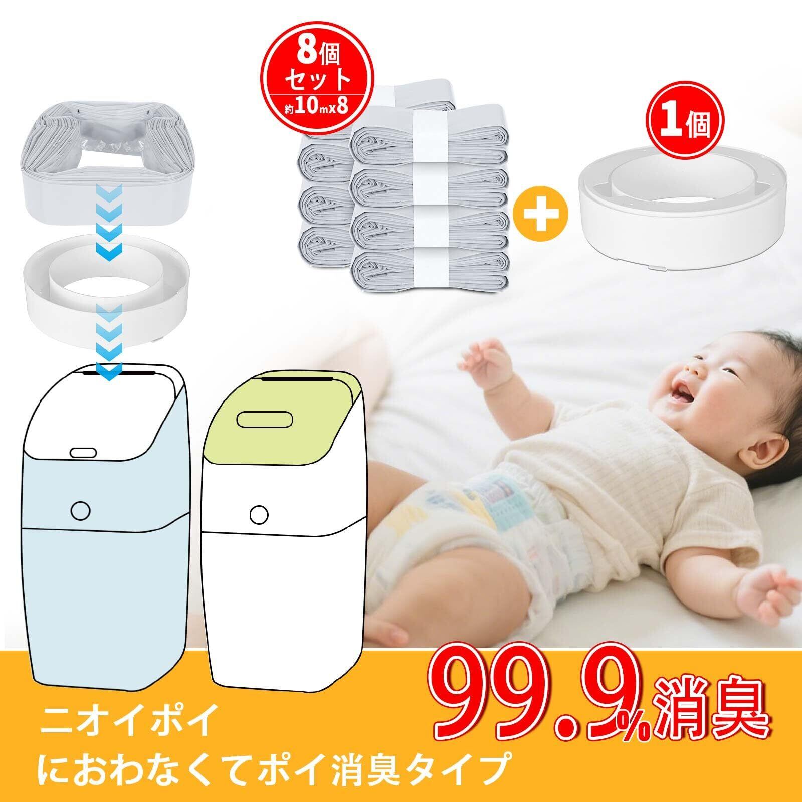 7層防臭 おむつゴミ箱用 詰め替え袋 10mx8個, Aprica (アップリカ) ニオイポイ/におわなくてポイ カートリッジ 対応互換(空カセット1個付き)
