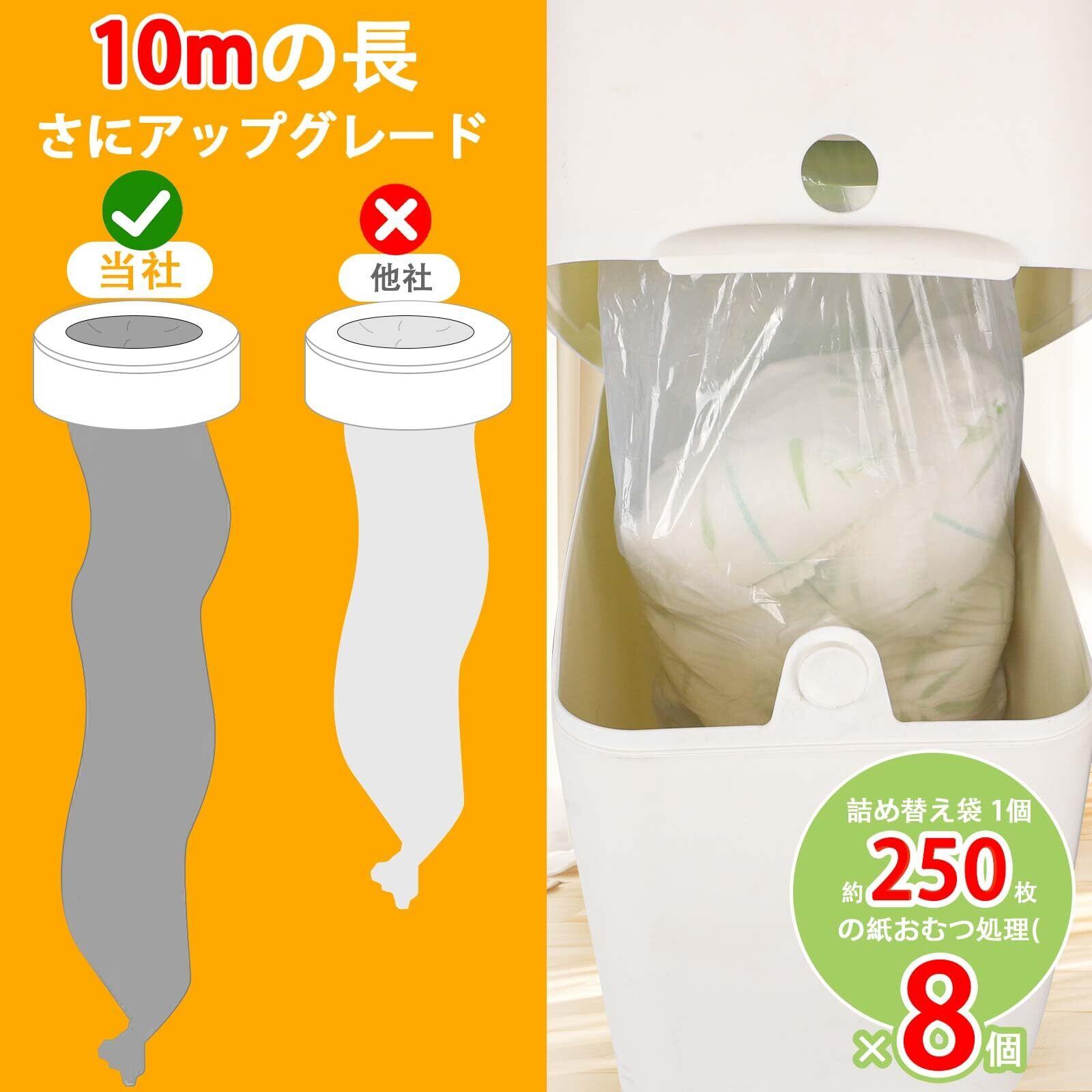 容量アップ: 10メートルにアップグレードされた長さで、従来よりも大容量のオムツ袋を提供します。リフィルや交換の頻度を減らし、使用時間を延ばすことができます。
