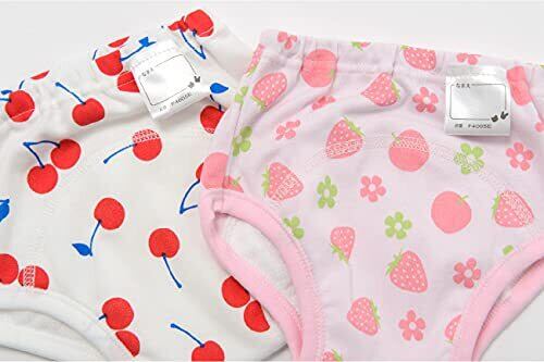 女の子たちのトイレトレーニングが楽しくなるように、さくらんぼ、いちご、リボンなど可愛い柄をプリントしました!