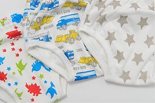 男の子たちのトイレトレーニングが楽しくなるように、車、電車、星柄、恐竜など可愛い柄をプリントしました!