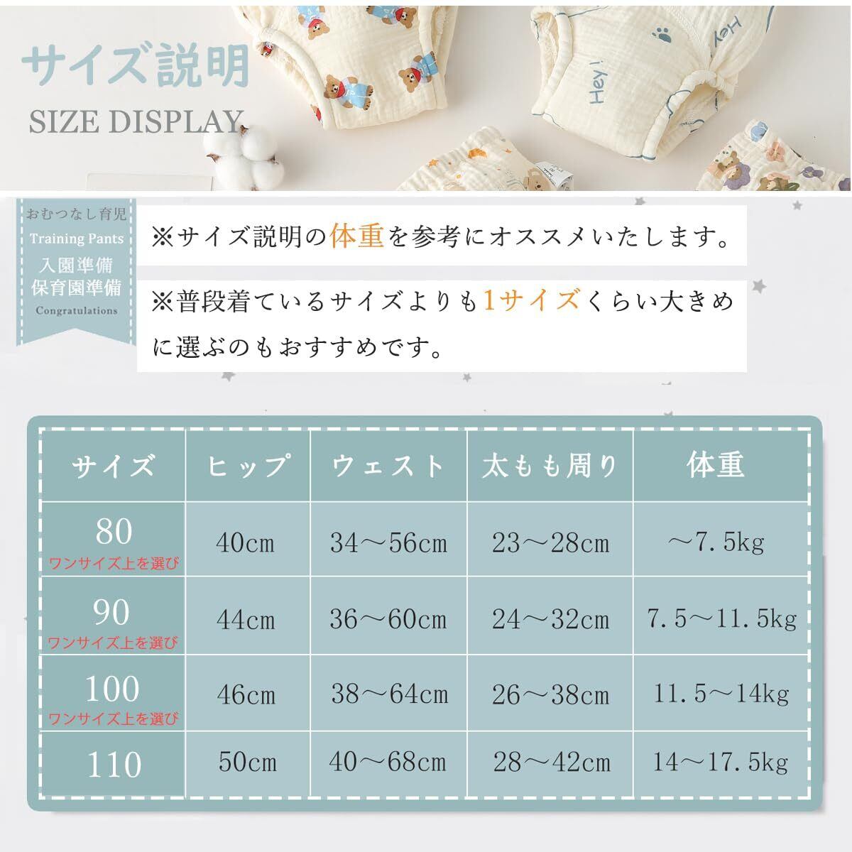 [GoUseGo] トレーニングパンツ ベビー 男の子 女の子 6層 6枚組 赤ちゃん トイトレパンツ 80 90 100 110cm ガーゼ地 綿 コットン 吸水性 通気性 トレパン おねしょ パンツ
