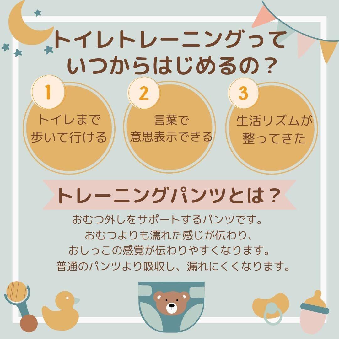 お子様のトイレトレーニングをサポートする可愛らしいトレーニングパンツ4枚セットです。柔らかな素材を使用し、お子様の敏感な肌にも優しい着け心地を実現しました。セットには楽しいデザインが含まれています。伸縮性のある生地で動きやすく、お子様が自分で着脱しやすい設計になっています。おむつからパンツへの移行期に最適で、吸水性も考慮されているため、トレーニング中の「もしも」にも安心です。可愛らしいデザインは、お子様のトイレトレーニングへの興味を引き出し、楽しみながら学べる環境を作ります。洗濯機で洗えるため、毎日清潔に使用できます。サイズ選びの際は、お子様の体格に合わせてお選びください。