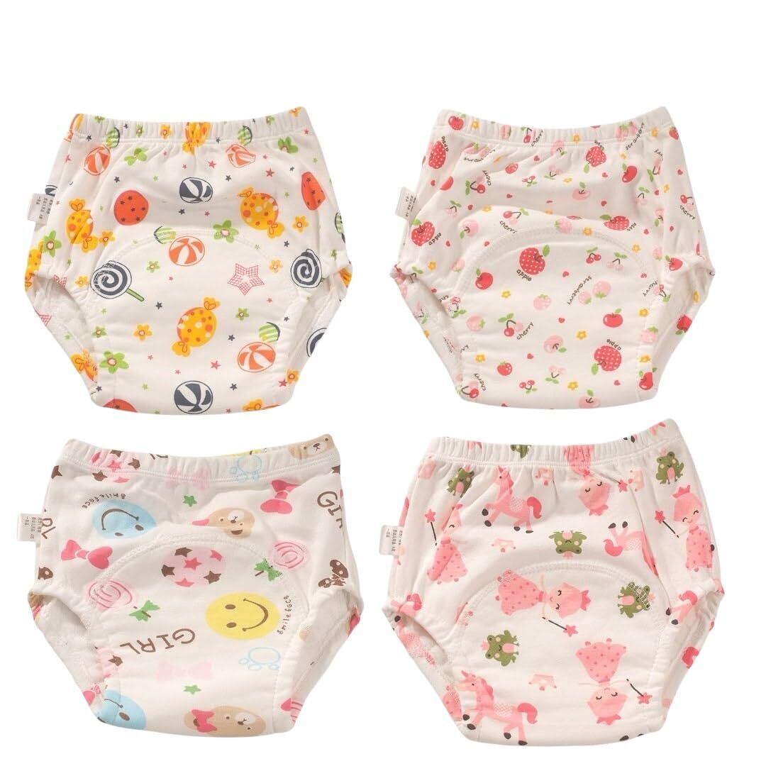 【新春セール】トレーニングパンツ トイトレ トレパン キッズ 保育園 幼稚園 6層 女の子 男の子 90 100 110 4枚組 パンツ ガーゼ おねしょ対策 通気性 布おむつ ベビー オールシーズン 春 夏 秋 冬 お泊り 旅行 お出かけ トイレトレーニング (Aタイプ, 100) | 無意味ステッカー