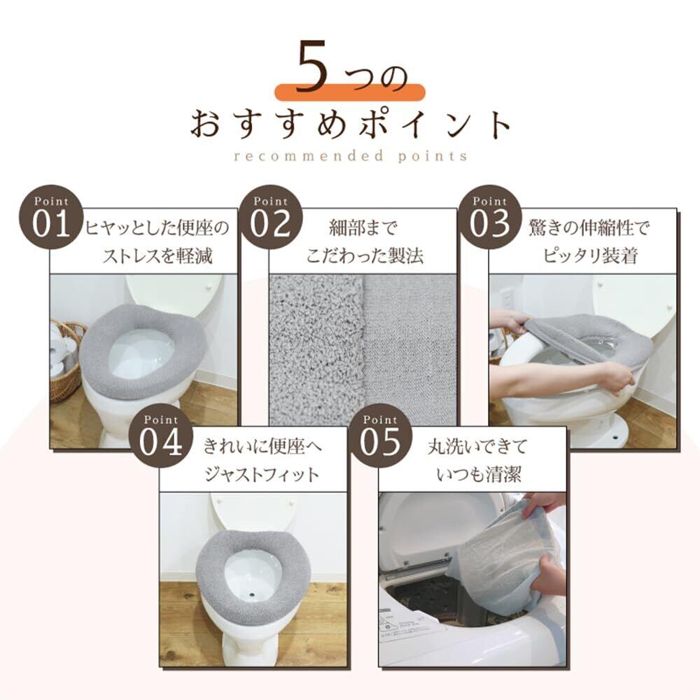 カキウチ 便座カバー O型 チャコール 洗濯機で丸洗い可能 かぶせて留めるだけ かんたんセット SELECT JUST FIT