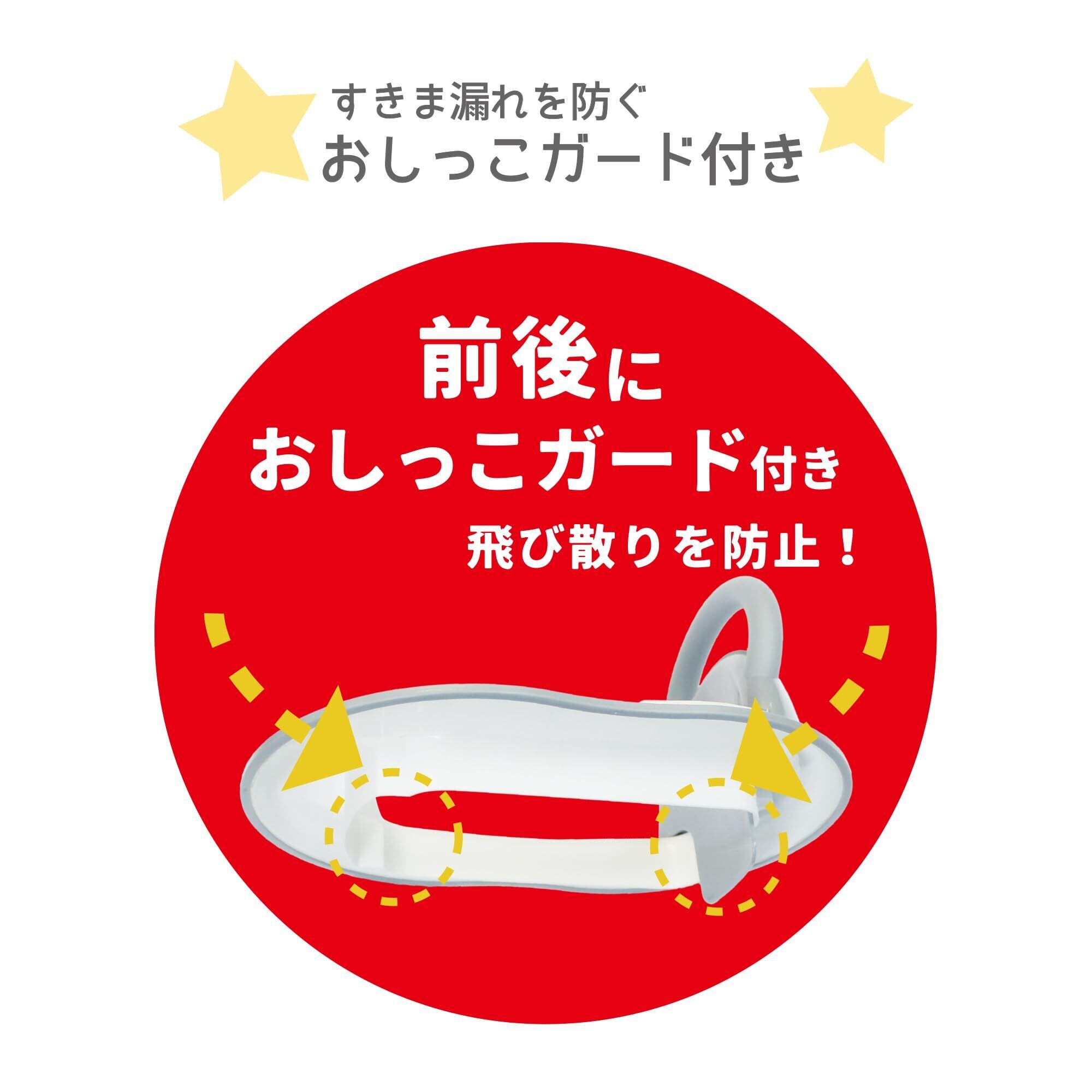 ●おしっこの飛び散りを防止するおしっこガードが補助便座の前後についています。