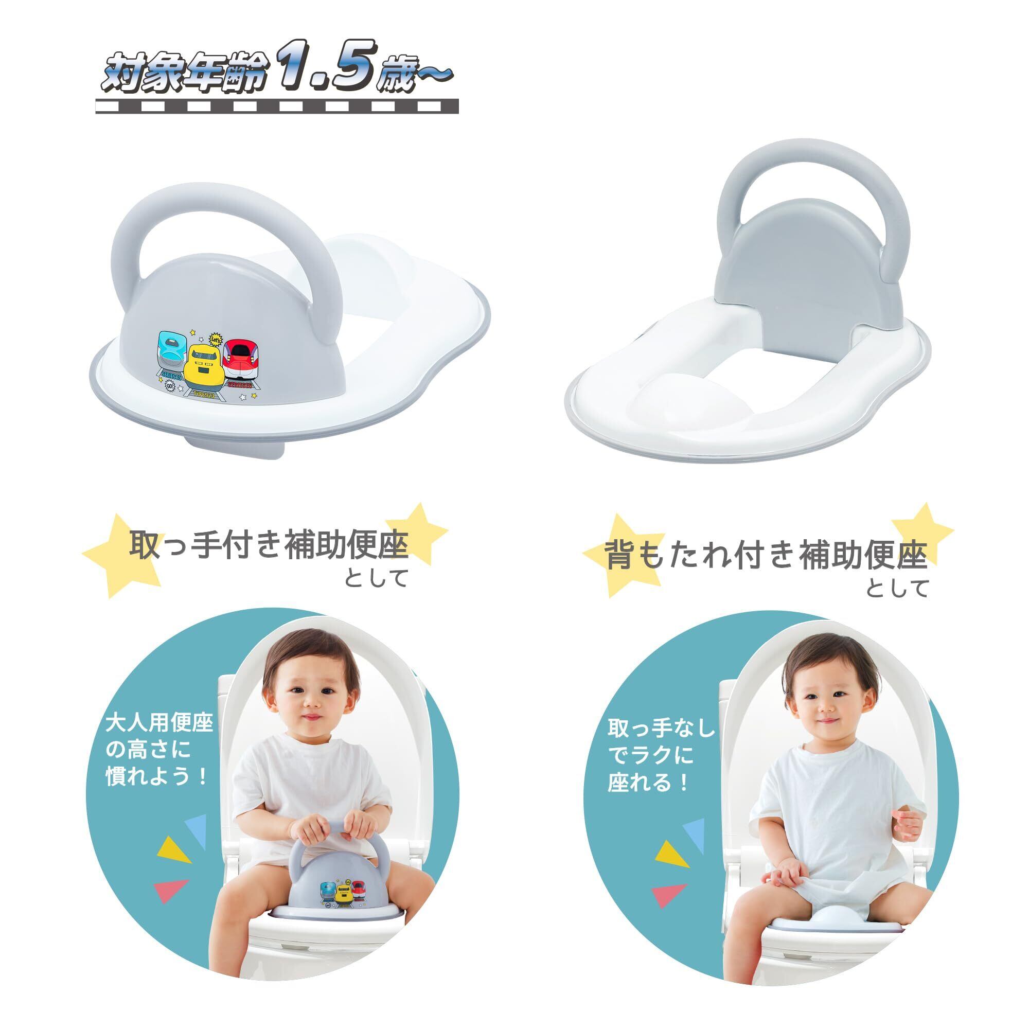 【人気商品】永和 新幹線 3WAY 補助便座 トイレトレーニング お子様の成長に合わせて 取っ手付き 背もたれ付き 3WAYで使える おしっこガード付き 飛び散り防ぐ 滑り止め付き 汚れたら丸洗い 組み立て簡単 子供 子ども 幼児用 | 無意味ステッカー