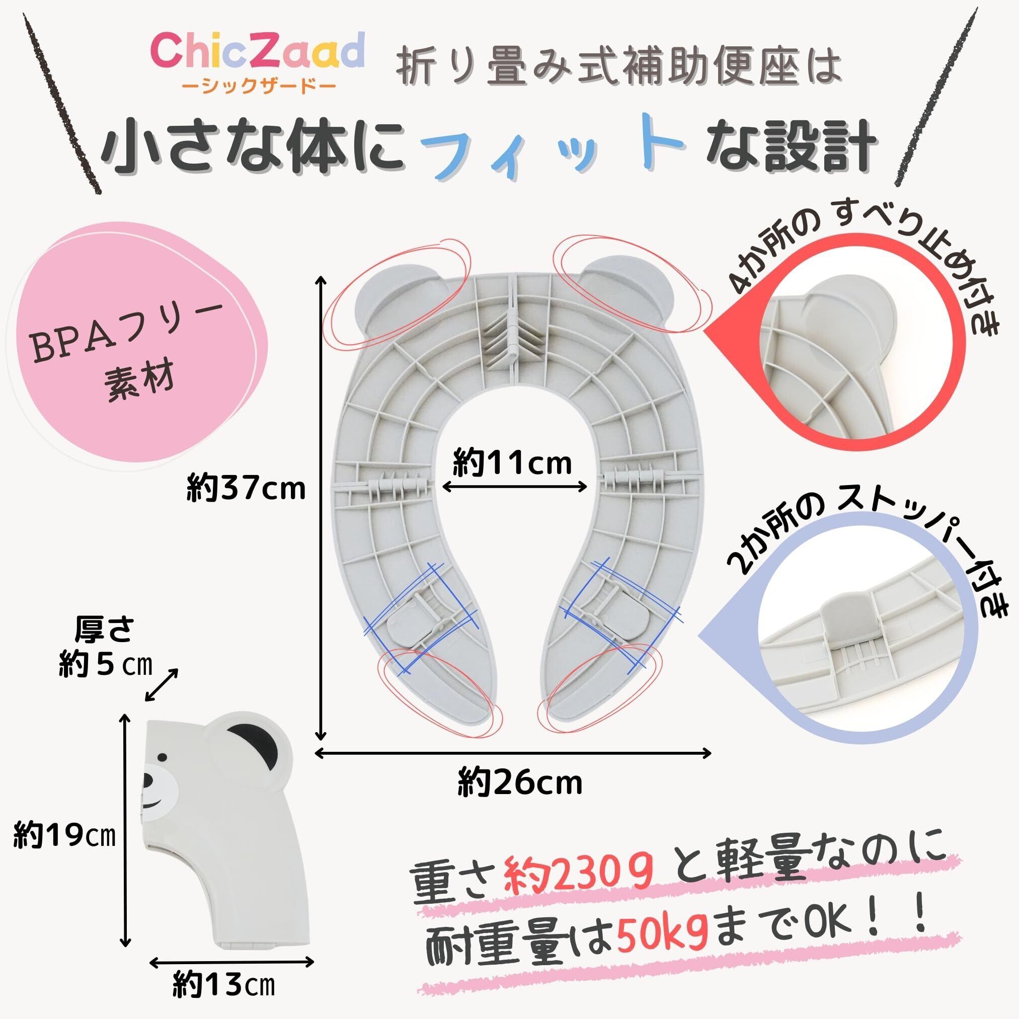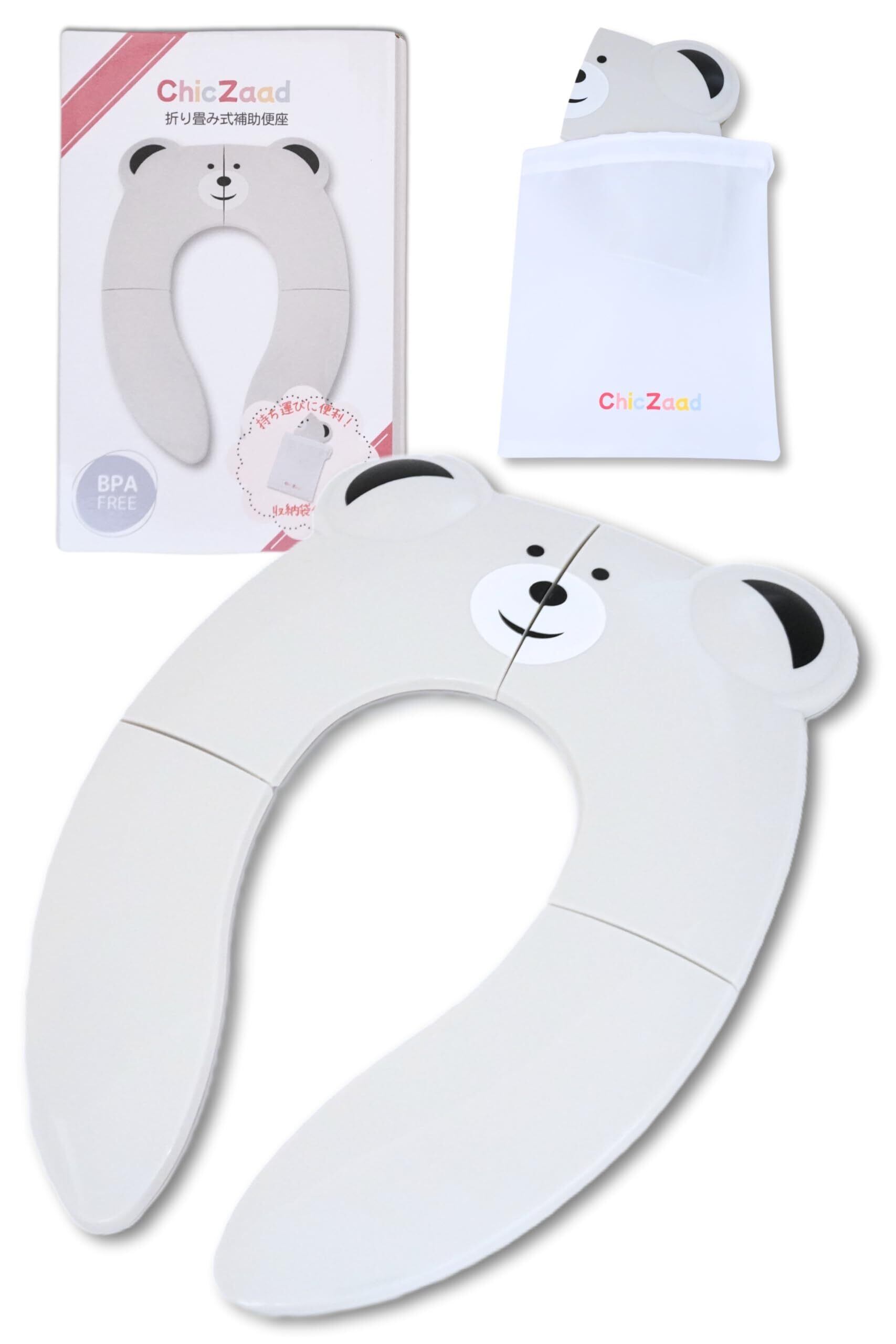 ChicZaad 折りたたみ補助便座 (収納ポーチ付き) 携帯 子供 幼児 トイレトレーニング 落下防止 旅行 おまる 子供用便座 ベビー コンパクト 外出用 衛生的(グレー)