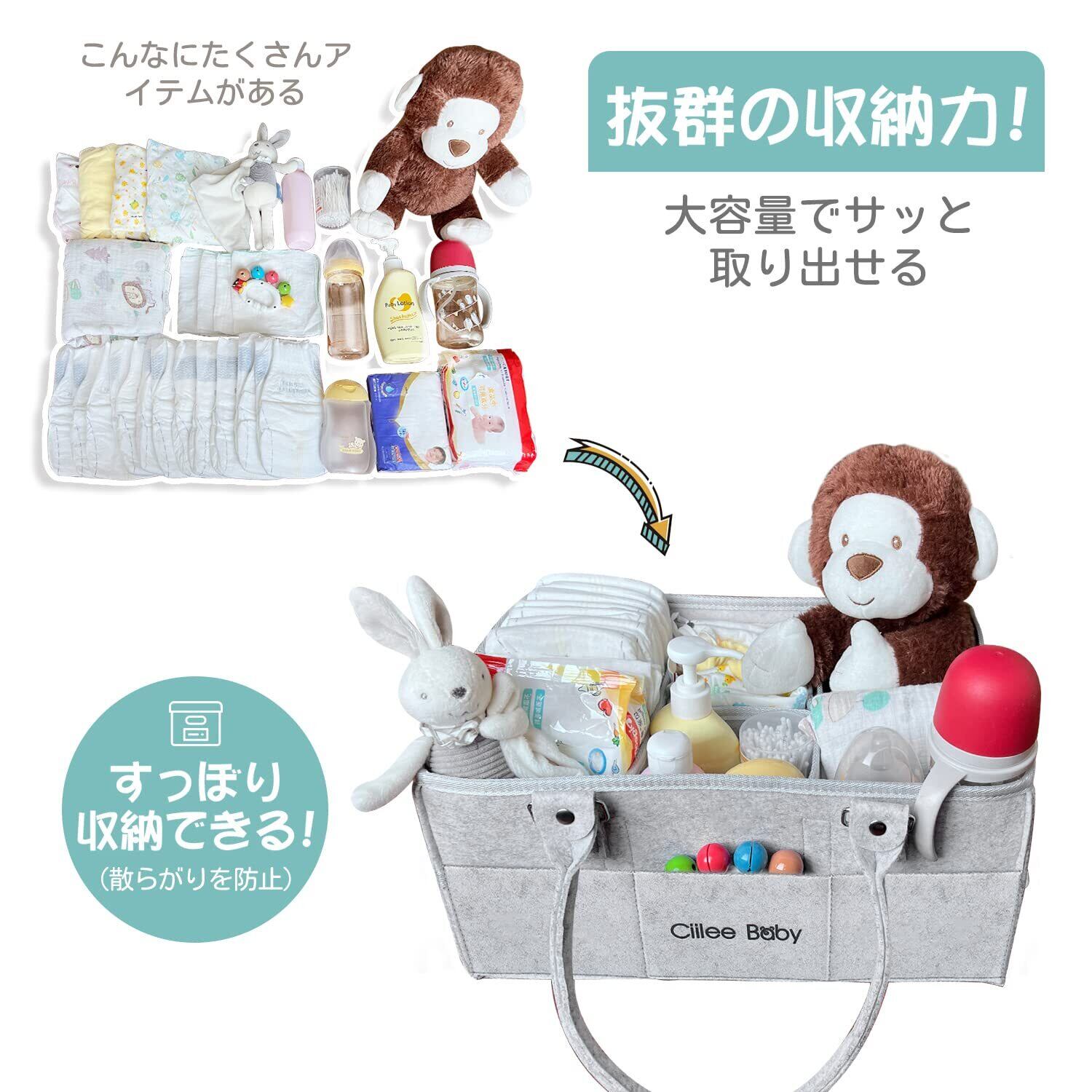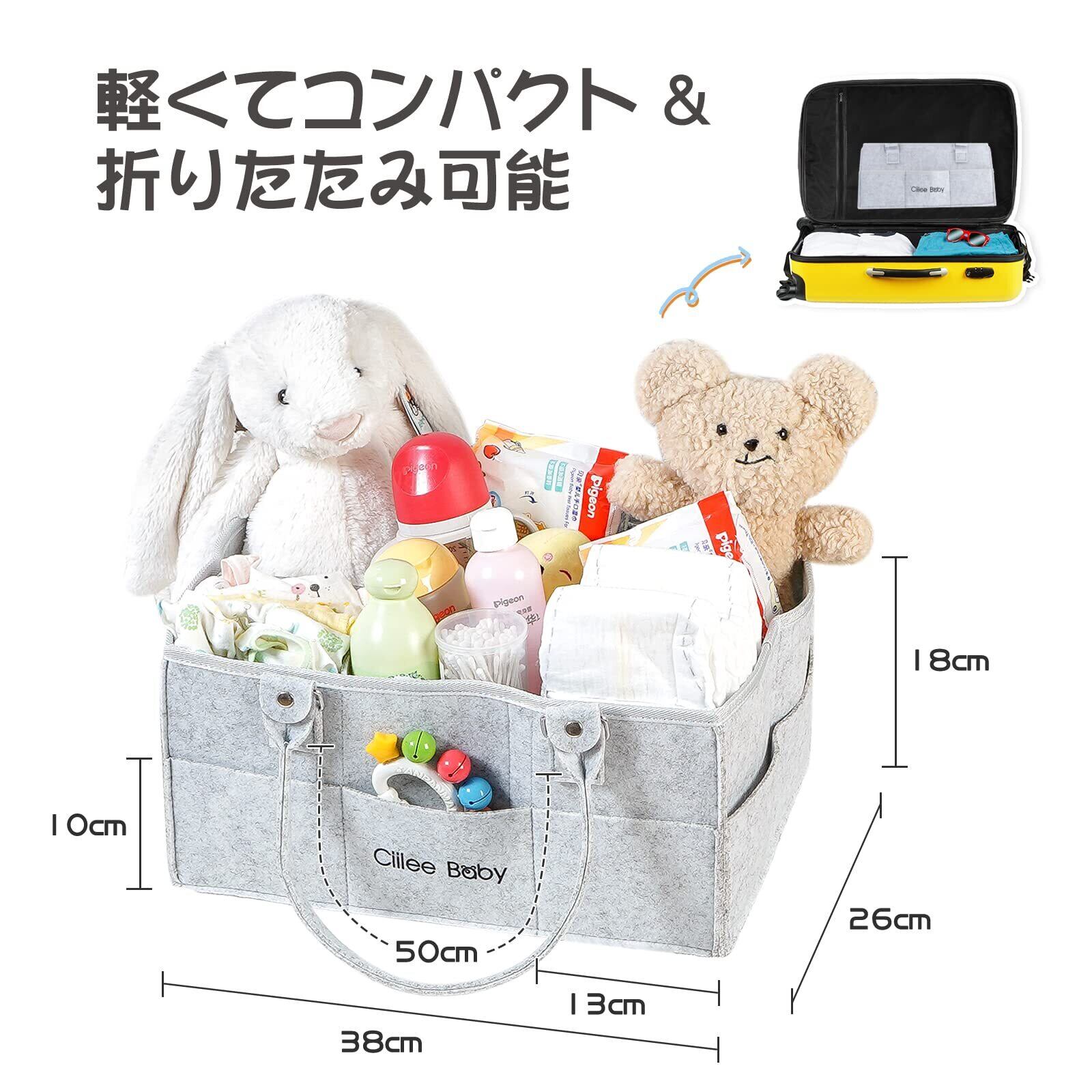Ciilee Baby おむつストッカー オムツバッグ 大容量 取り外せハンドル オムツケース 折りたたみ ベビー 収納ボックス カゴ 車載旅行用バック 収納カコ 小物入れ 軽便 ベビー用品 育児用品入れ (仕切り6つ(灰))
