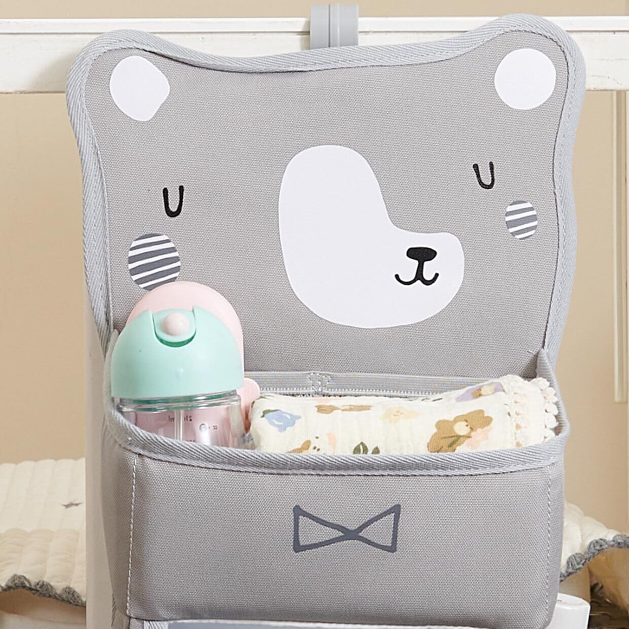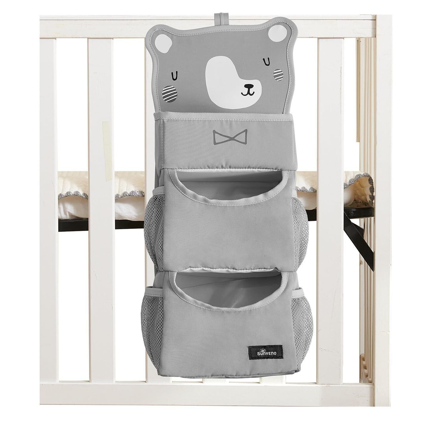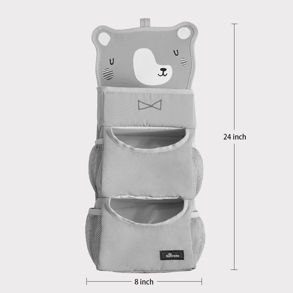 SUNEVNO ハンギングベビーおむつキャディオーガナイザー おむつスタッカー ベビーベッド吊り下げ分類ストレージバッグオーガナイザー おむつ交換テーブルベビーベッドプレイヤードまたは壁&保育園の整理に (灰色の熊)