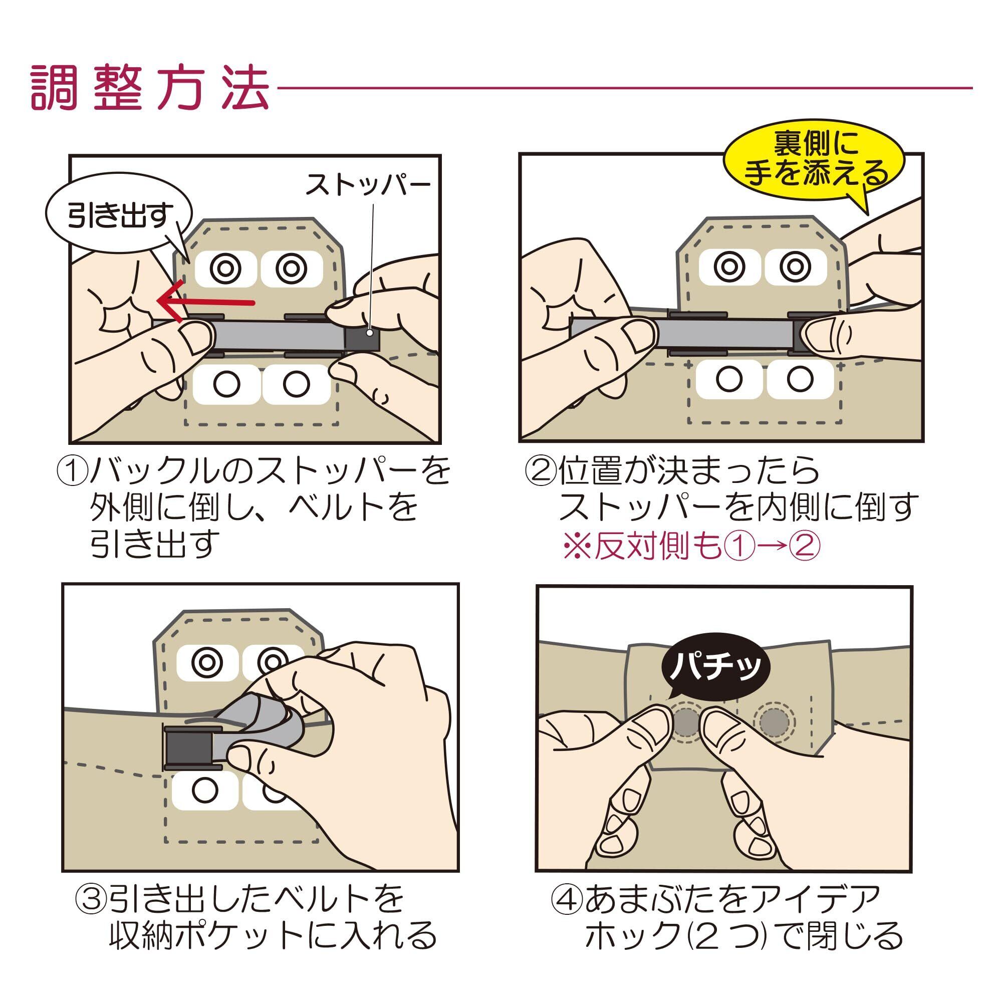 サイズ(胴周り)/S:55~68cm、M:67~83cm、L:82~98cm、LL:97~113cm