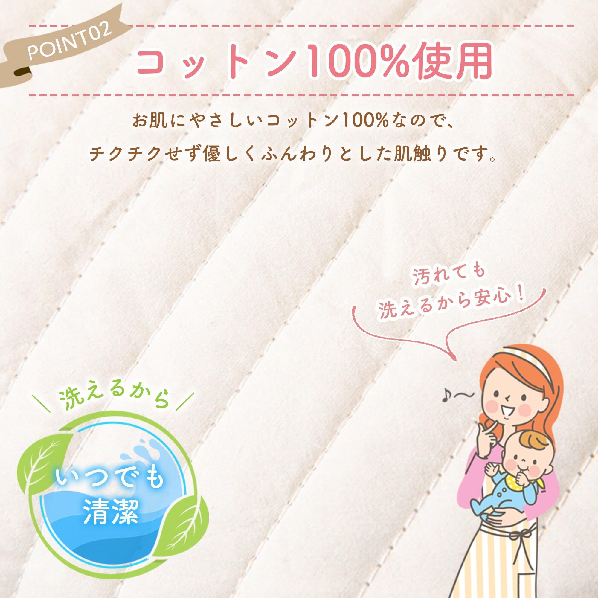 【コットン100%使用】お肌にやさしいコットン100%なので、チクチクせず優しくふんわりとした肌触りです。 汚れても洗えるから、いつでも清潔、安心です。