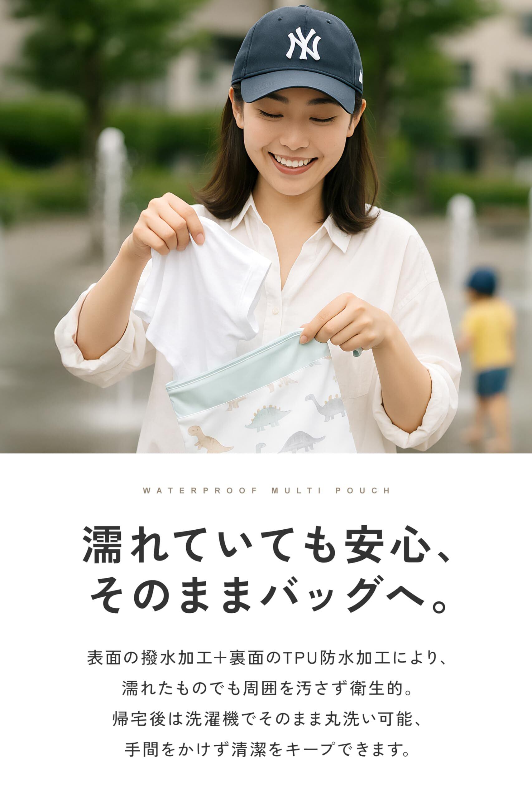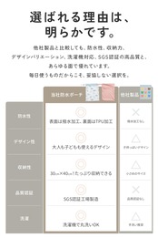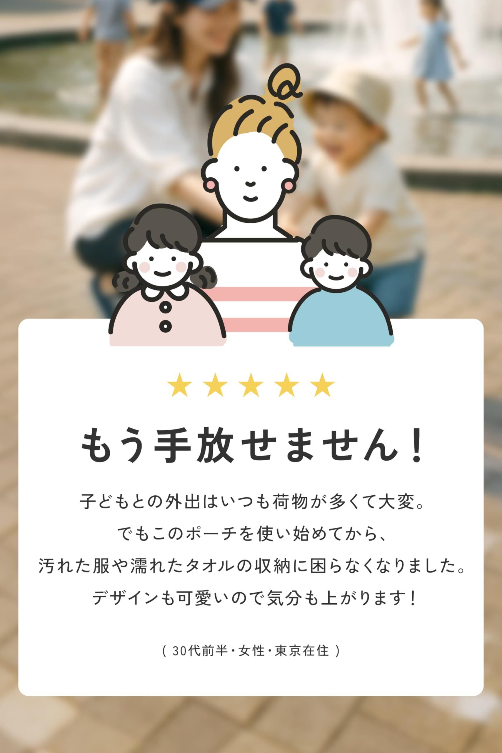 【信頼の声と安心の品質】 多くのご家庭から「子供の外出時に必需品!」「濡れた物の収納に困らなくなりました!」と高評価の声が届いています。またSGS認証工場での製造により、世界基準の厳しい安全性と品質をクリアしています。実際に使用された東京都在住の30代前半のママからは、「デザインも可愛く、収納力も十分。安心して子供との外出が楽しめるようになりました」と信頼の声をいただいています。