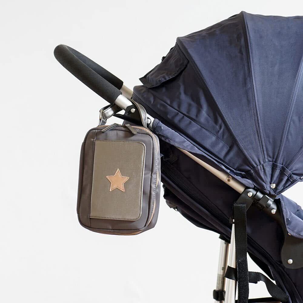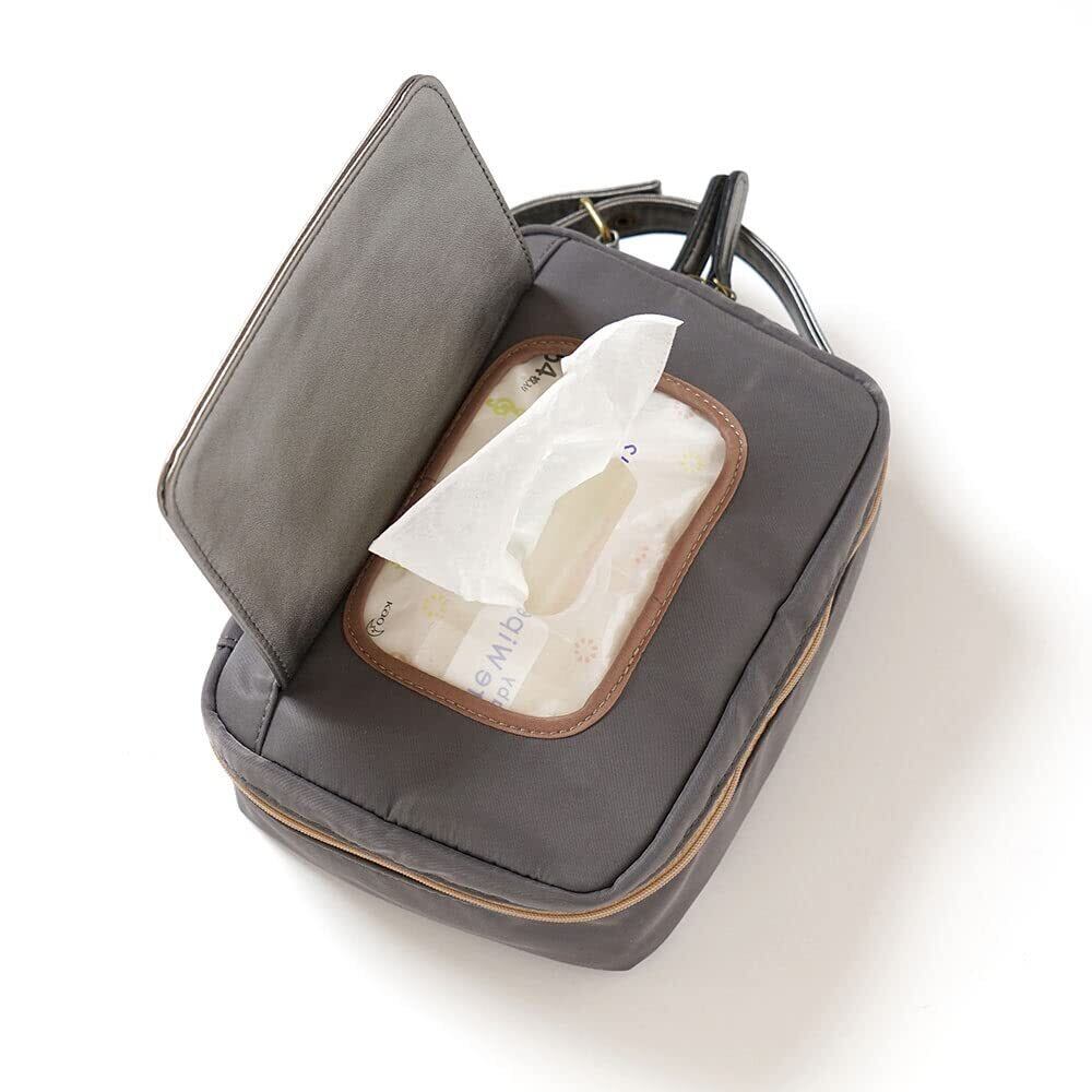 おむつとおしりふきをまとめて持ち歩けるポーチ。フラップからおしりふきをワンタッチで取り出せます。 外出先での赤ちゃんのおむつ替えをより便利にスマートに助けるアイテム。 磁石付きフラップを開ければおしりふきがさっと取り出せます。 持ち手はベビーカーや車のヘッドレストに取付けやすく、 縦型でバッグやリュックからの取り出しやすさにもこだわっています。 ベビーサイズおむつ約5枚とおしりふきが余裕を持って入ります。 外側にもポケットがあり、ビニール袋などの小物の収納もできます。 また、市販のおしりふき専用フタをお使いの場合にも、快適にお使いいただけるようになっています。 磁石付きフラップがあることで、市販の専用フタが鞄の中などで引っかかって外れることを軽減します。 おしりふきをポーチにセットし、おしりふき側に市販の専用フタを装着下さい。 ※消臭ポーチはついていません。 ※ポーチのフラップ側と専用フタは一体化しません。 ※市販の専用フタは、粘着部分12×8cm以内のものに対応。