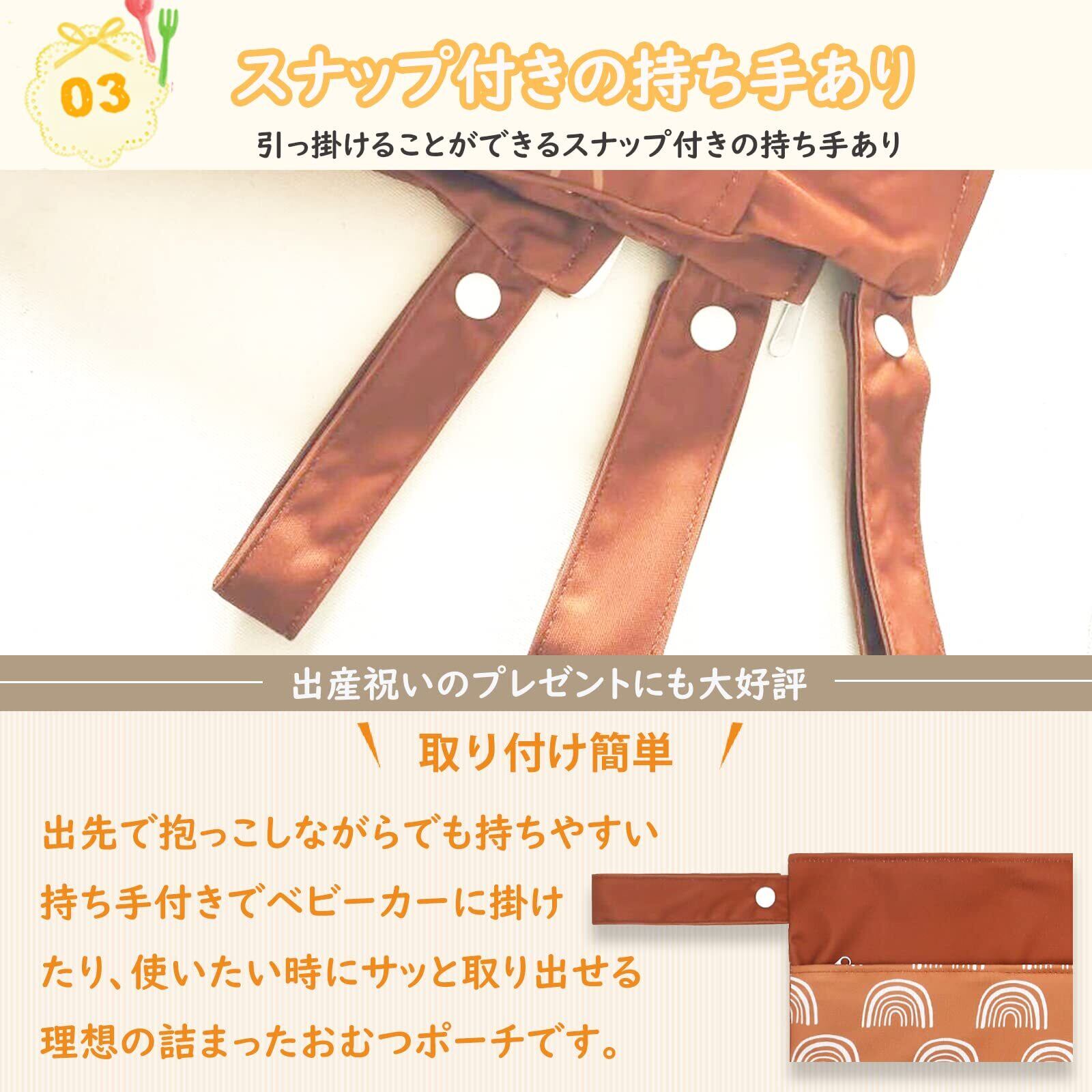 【お出かけに便利】引っ掛けることができるスナップ付きの持ち手あり、出先で抱っこしながらでもベビーカーのフックに掛けたり使いたい時に出し入れが便利です。おむつポーチとしてはもちろん、ビーチバッグやプールバッグとしても、普段の生活でも便利にご活用いただけます。