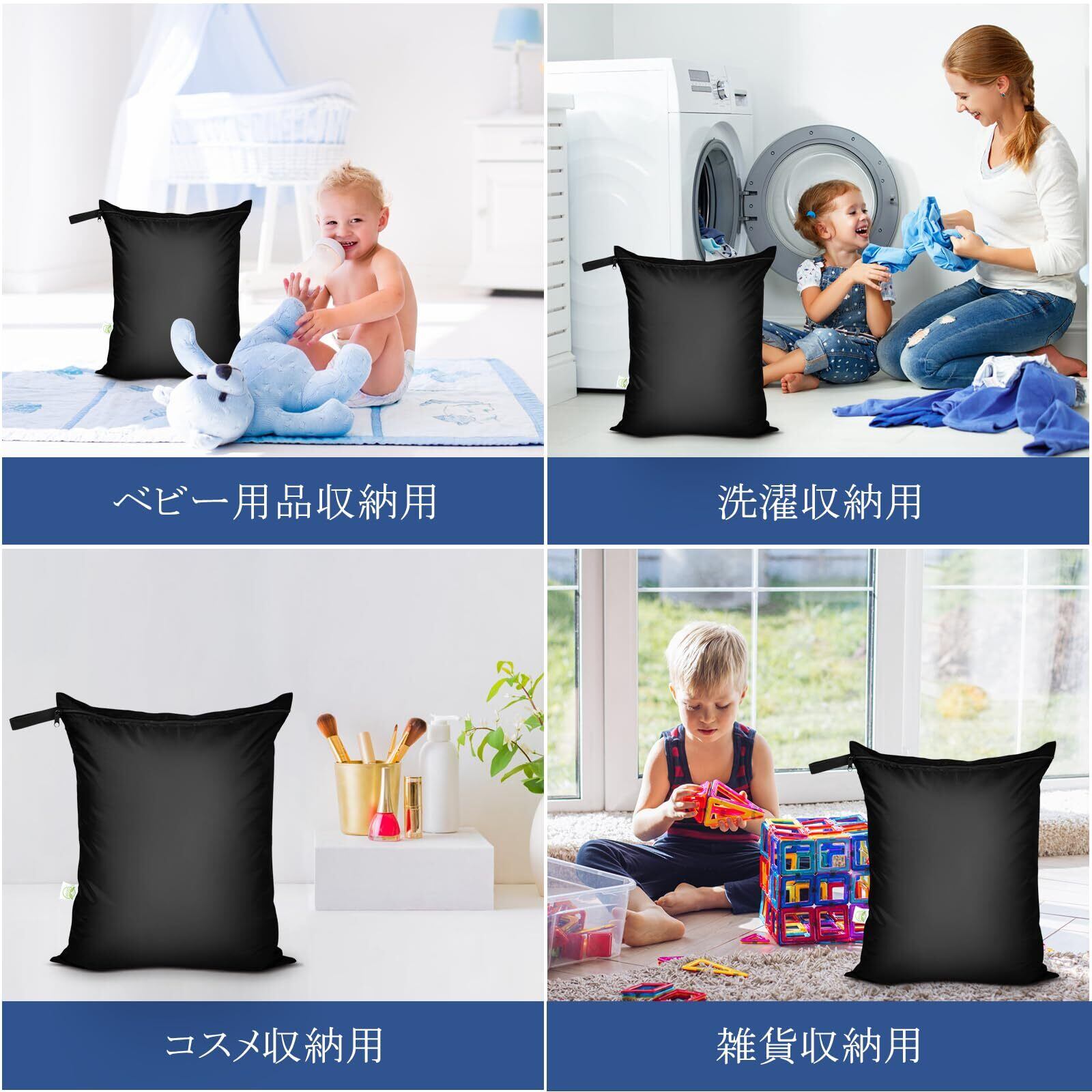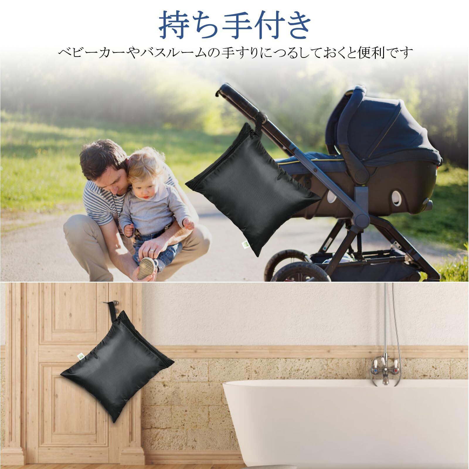 【2022最新】OTraki おむつポーチ 手提げ 黒 防水ポーチ 水着 30x36cm 2点セット おむつバッグ オックスフォード布素材 防水 汚れ物入れ ベビーカーバッグ おしりふき着替え ウェットバッグ マルチ収納 Waterproof bag お出かけ 保育園 温泉 旅行用 ブラック | 無意味ステッカー