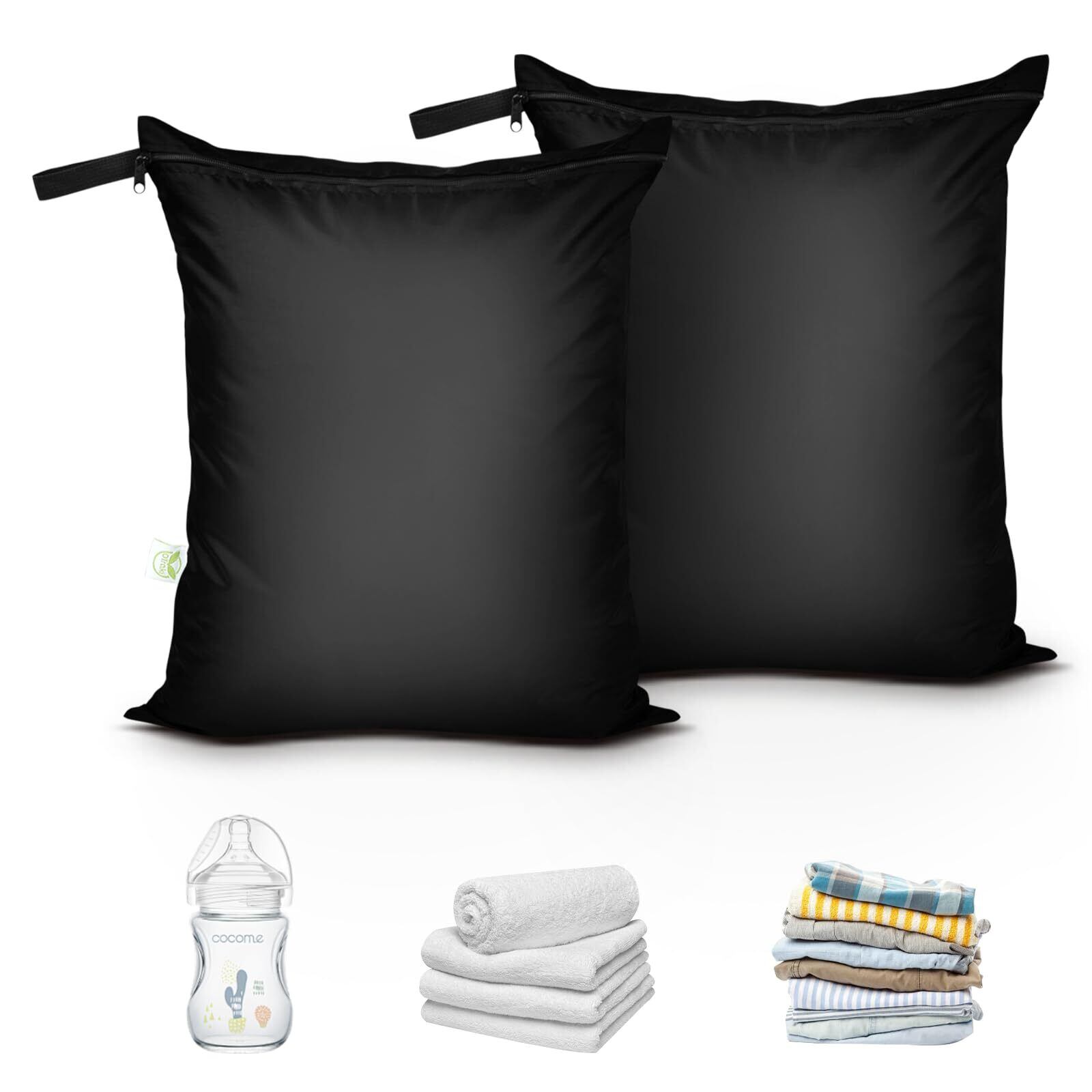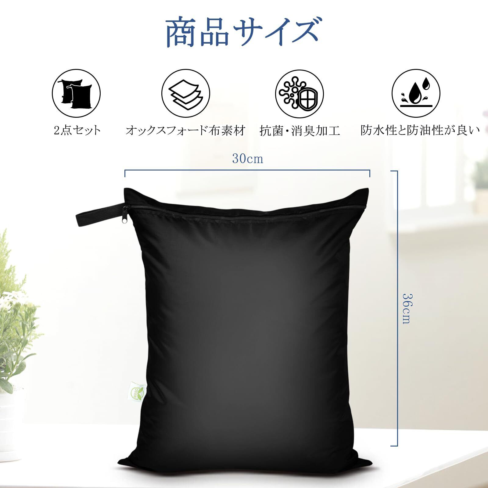 OTraki おむつポーチ 手提げ 黒 防水ポーチ 水着 30x36cm 2点セット おむつバッグ オックスフォード布素材 防水 汚れ物入れ ベビーカーバッグ おしりふき着替え ウェットバッグ マルチ収納 Waterproof bag お出かけ 保育園 温泉 旅行用 ブラック