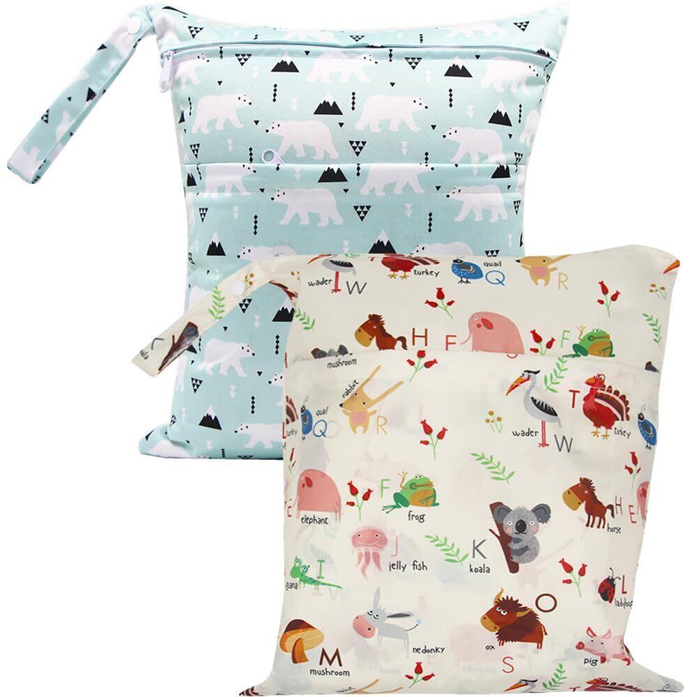 【クリエイティブなスタイルと適切なサイズ】2つの異なるクリエイティブなスタイルのウェットバッグがあり、おしゃれで魅力的に見えます。布おむつ袋のサイズは約36cm×30cm。