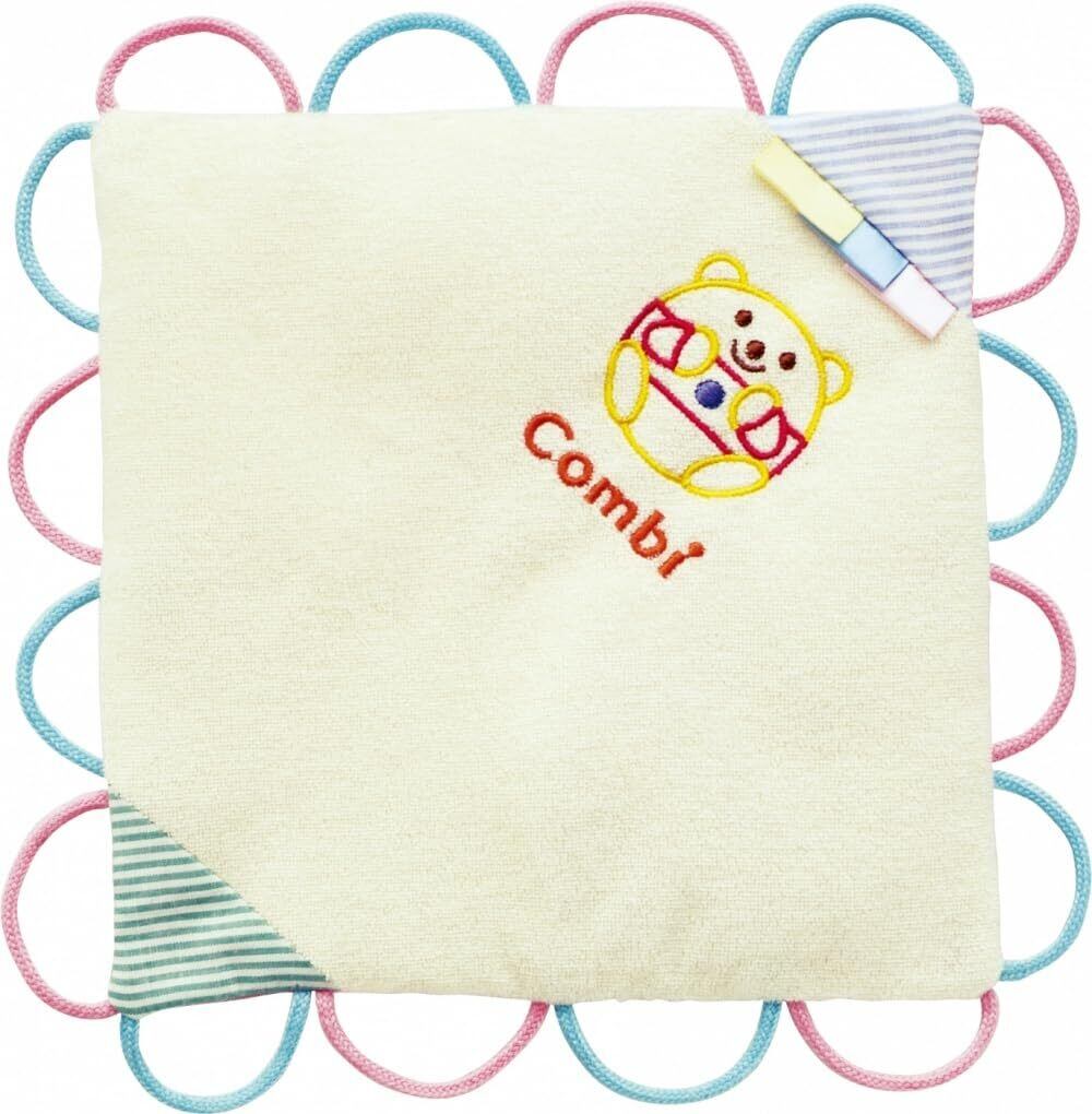 赤ちゃんの大好きな輪っかになったヒモや、にぎった時にタオルからカサカサ音がして、好奇心を刺激します。