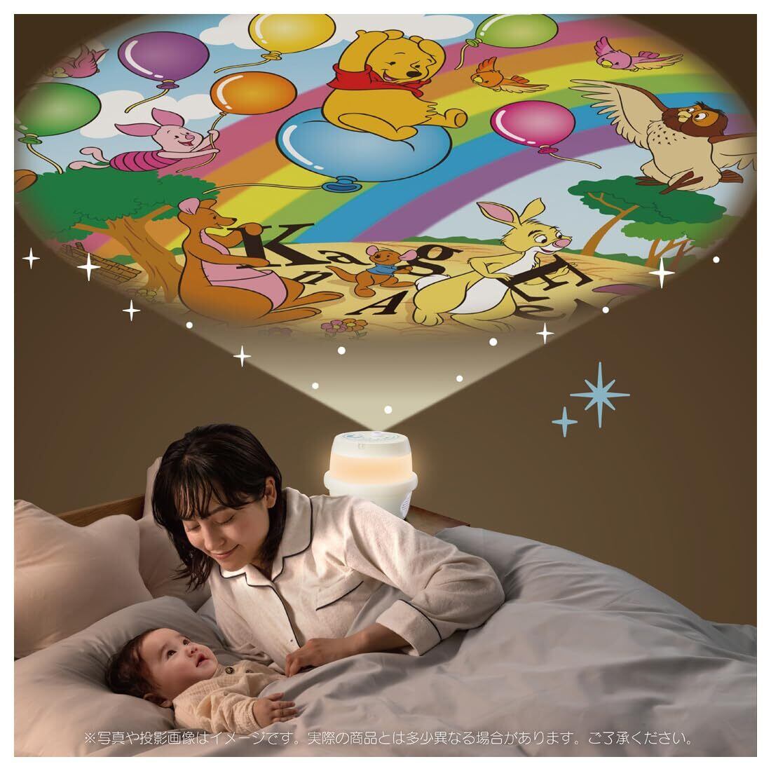 「くまのプーさん」の声が入ったオリジナルストーリー入りで、おやすみタイムに読み聞かせを取り入れたい方におすすめ。絵本の世界が天井いっぱいに広がります。