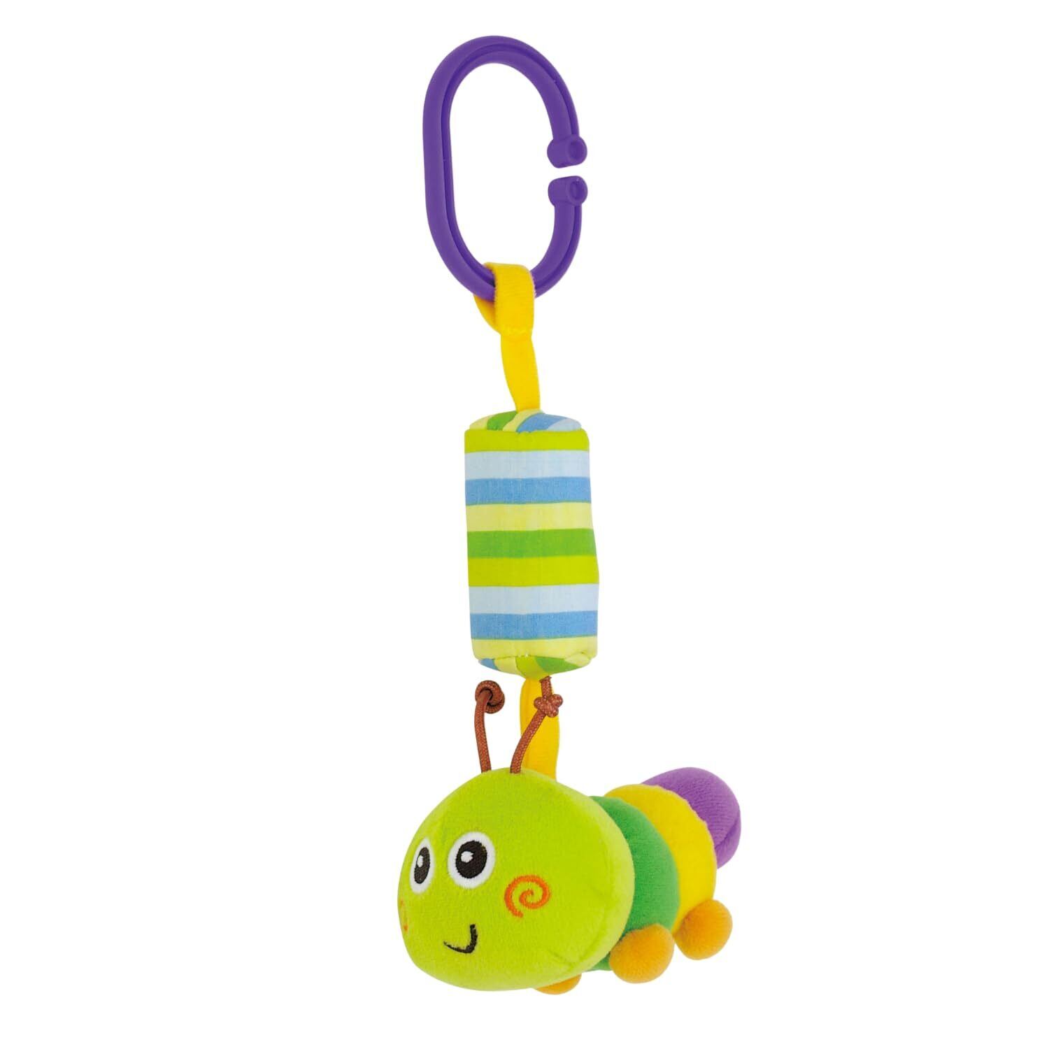 【やわらか素材のおでかけチャイム】赤ちゃんもにっこりするやわらかい素材のいもむしの人形。大きめサイズで掴みやすい! たくさんぎゅ~と握ってね!