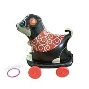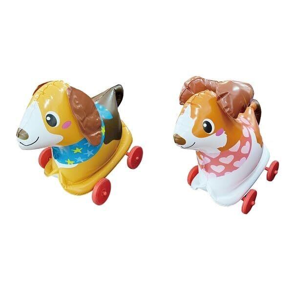 おさんぽわんわん 6色展開 6種類のわんちゃんと楽しくおさんぽ リングを持って引っ張ると、コロコロ転がってついてくるよ どこでもコロコロつれていこう! サイズ(約):全長23cm × 横幅18cm × 高さ28cm 重量約97g 【内容物】 本体・車輪一式・ひも・リング 【組み立て手順】 ①本体に空気を入れて膨らませる。 ②車輪を取り付ける。