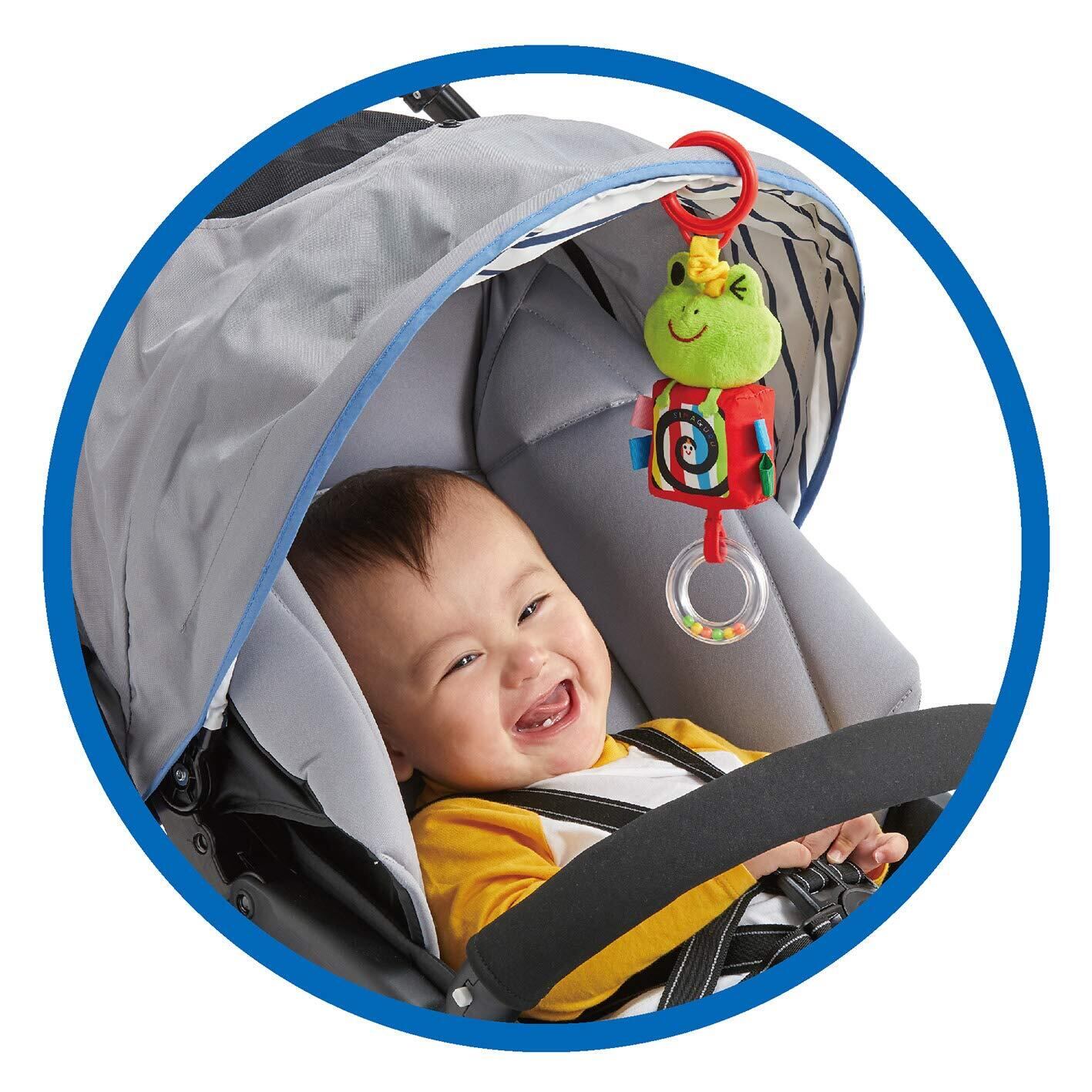 赤ちゃん認識絵本売り上げNo.1『しましまぐるぐる』のベビートイシリーズ!ひっぱるとぶるぶる動く!赤ちゃんとママのおでかけをサポートしてくれるかえるのマスコットです。本体を下にひっぱるとぶるぶるふるえながら上に戻るので赤ちゃんも興味深々!つまんで楽しいカラフルなタグは指先の発達を促します。ビーズ入りリングはゆらすとしゃらしゃら音が鳴ります。おでかけに便利なリング付き!ベビーカーに取り付けられます。