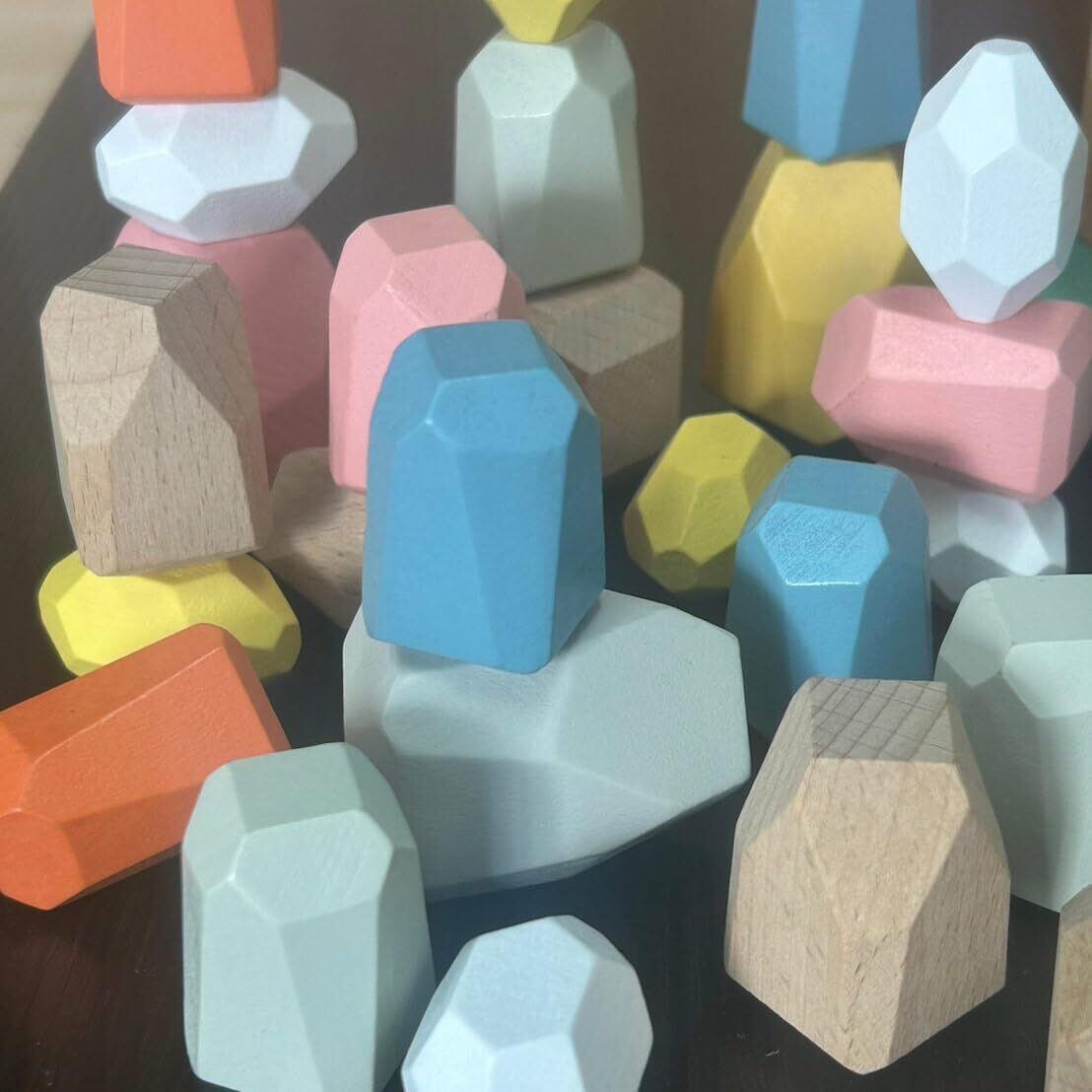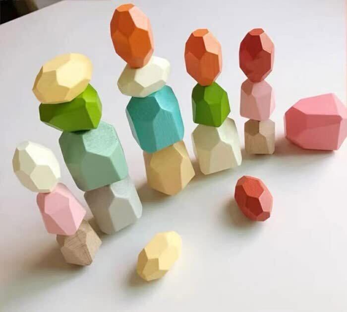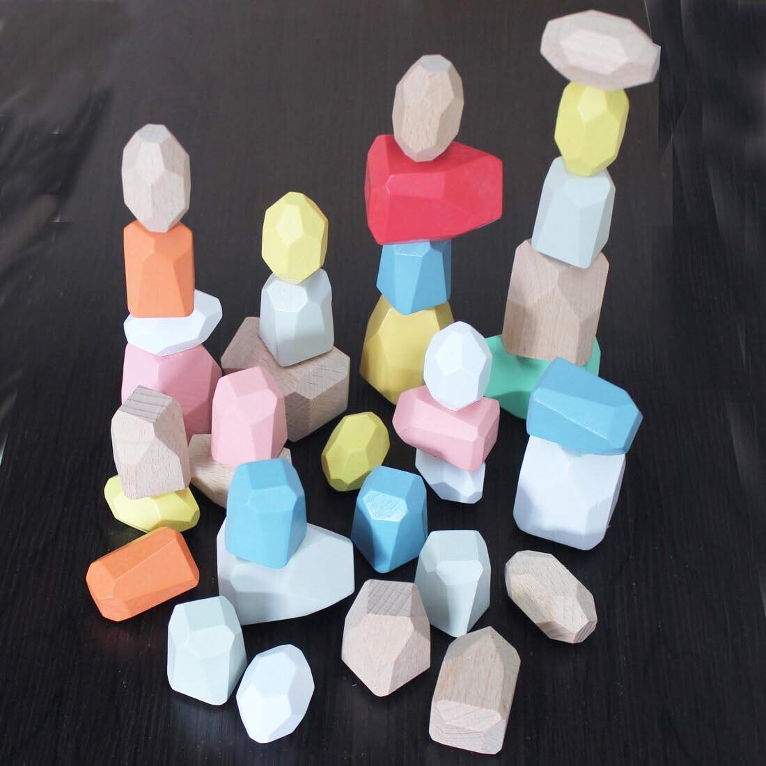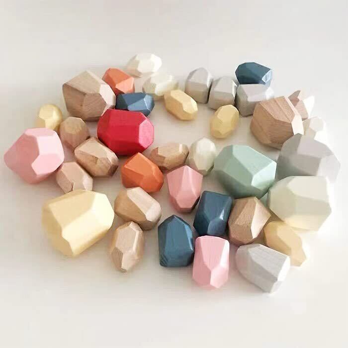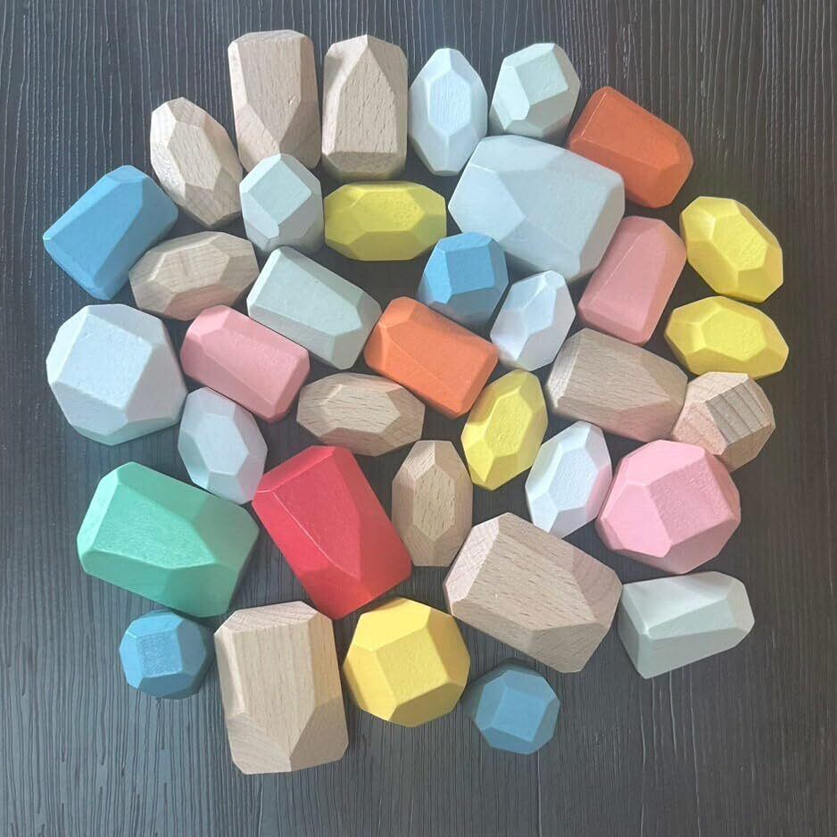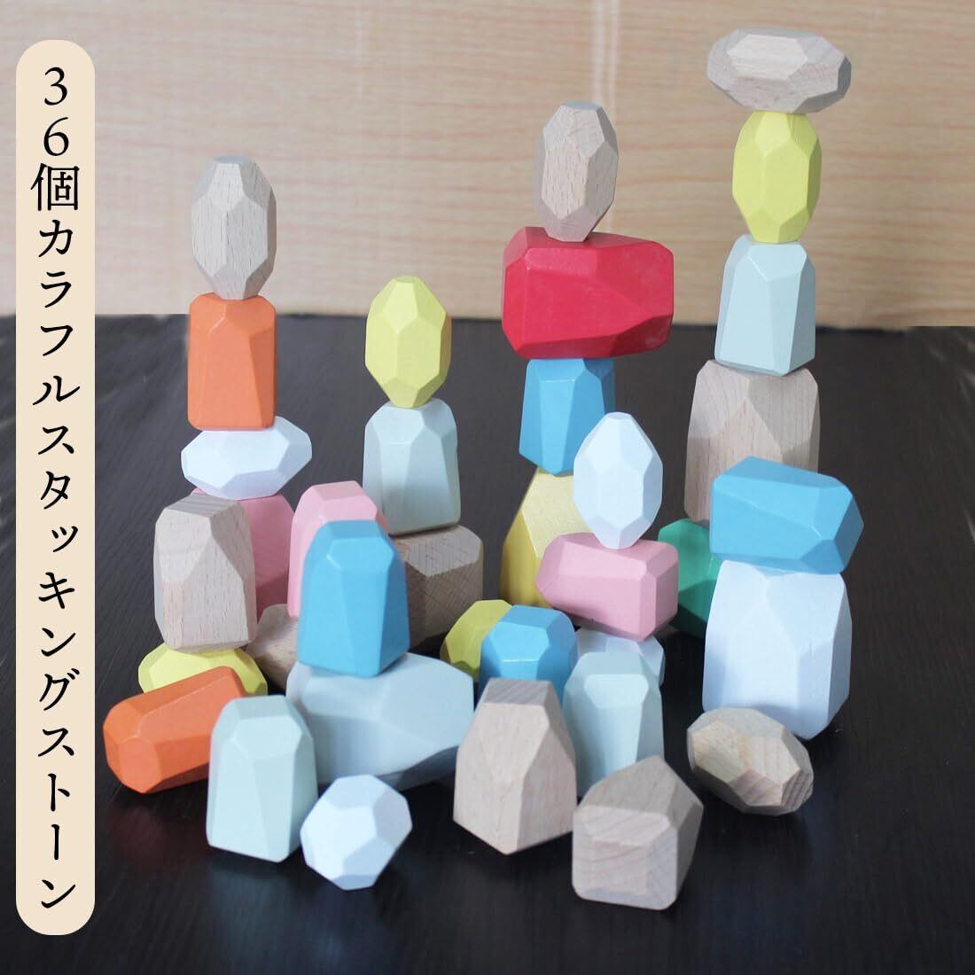 カラフル スタッキングストーン 36個セット 積み木 積み石 知育玩具 認知 老人 高齢者 キッズ つみき ウッドブロック (36個)