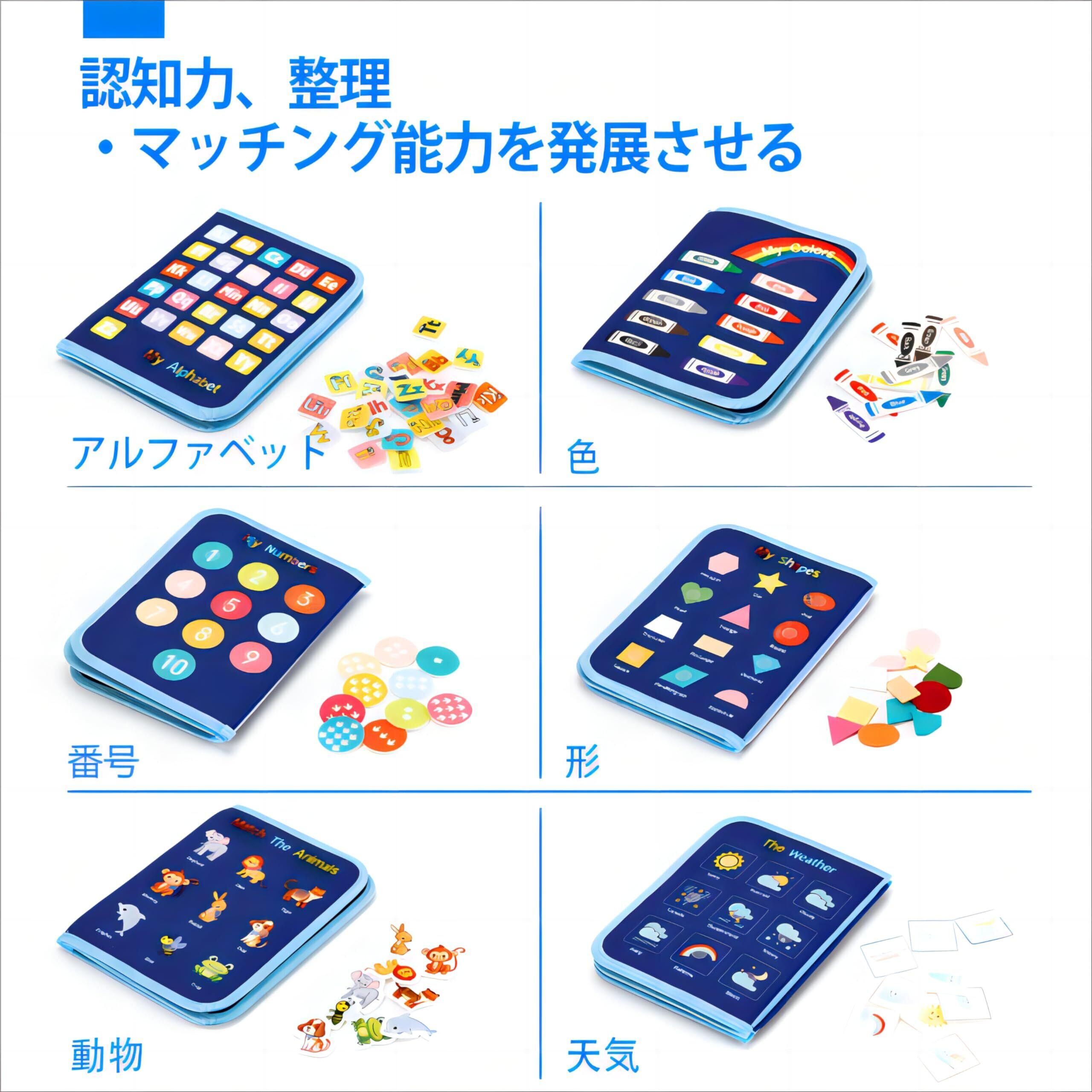 認知能力を育む:26文字、10個の数字、10色、12種類の形、11種類の動物、9つの天気要素が含まれています。分類やマッチングに最適で、幼児から未就学児までの認知発達を促進します。