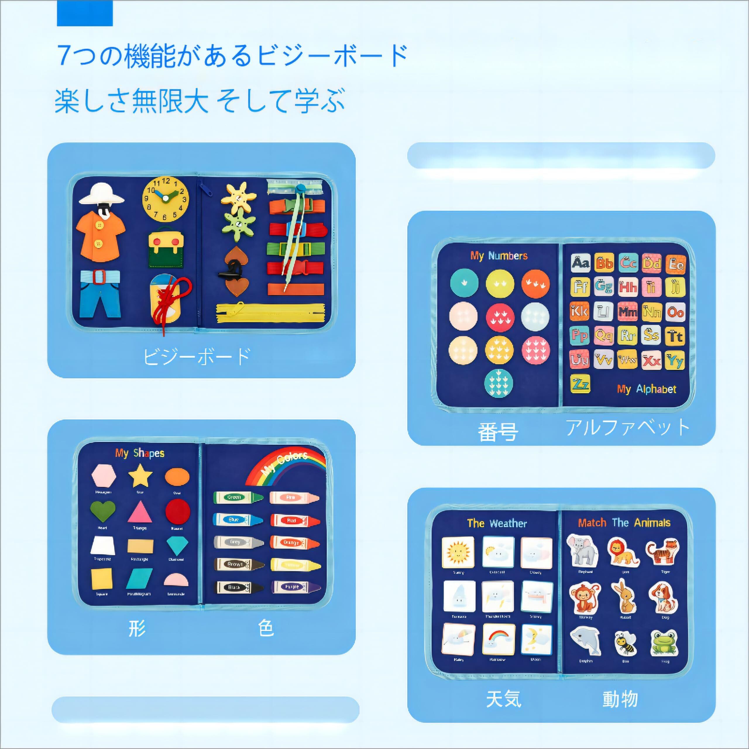 hahaland お出掛け布絵本 ビジーボード モンテッソーリ おもちゃ 知育玩具 男の子 女の子 1 2 3 4 5 6歳 紐通し 指先 数字 英語 アルファベット 幼児 学習 教育 入園準備 誕生日プレゼント 贈り物