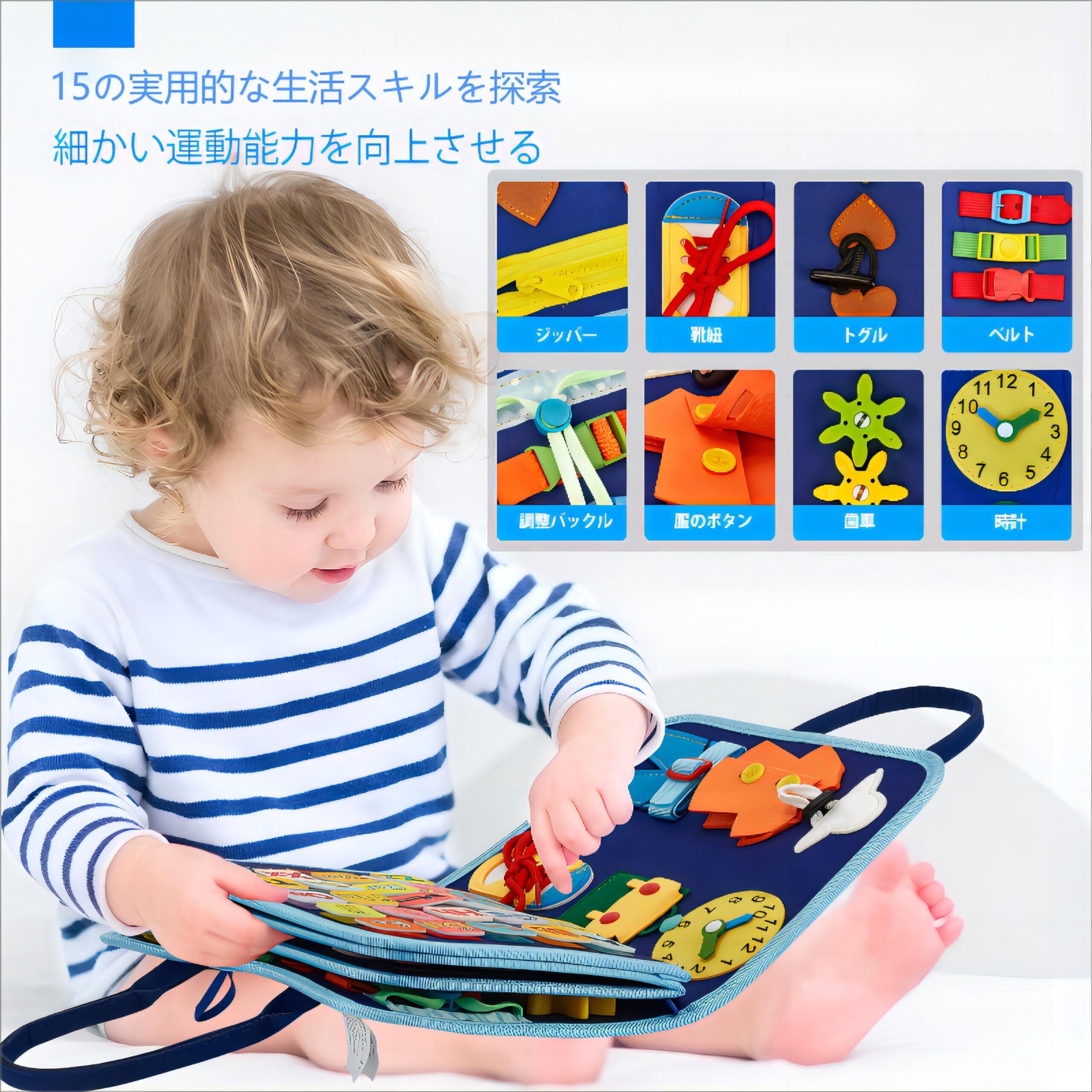 21-in-1モンテッソーリビジーボード:生活スキル、アルファベット、数字、形、色、動物、天気を含む、幼児が遊びながら学べるすべてを詰め込んだボードです。静かな時間を過ごすのに最適なおもちゃで、親にとっても安らぎを提供します。