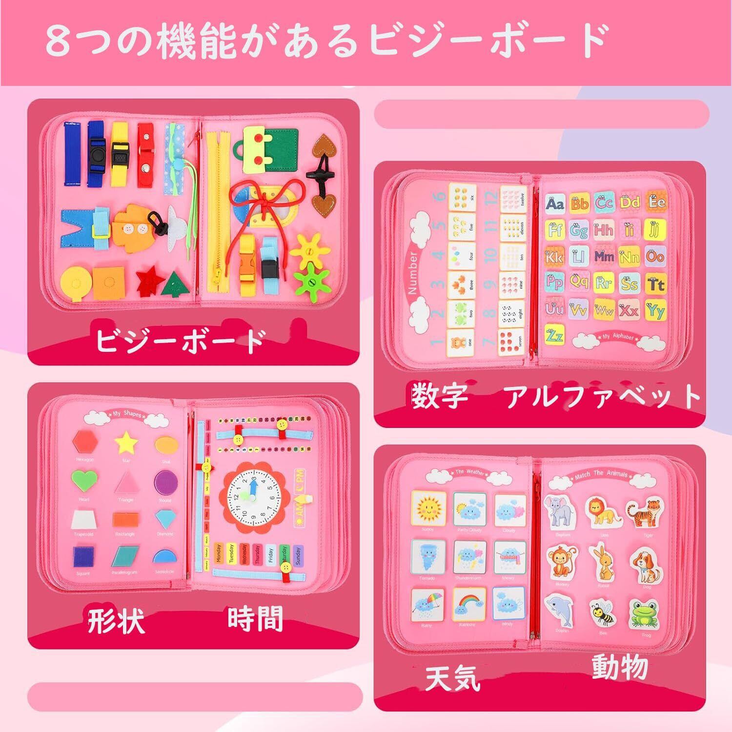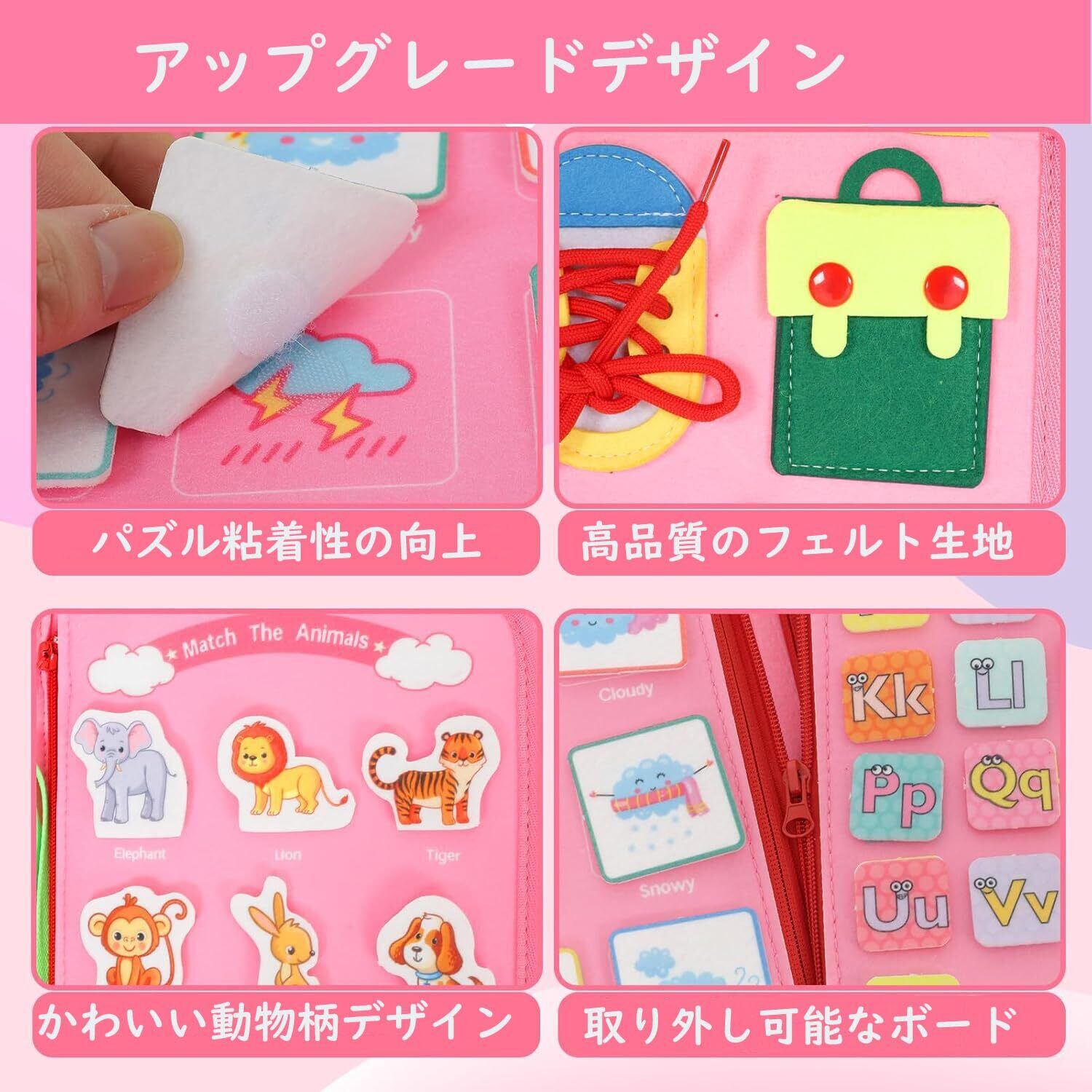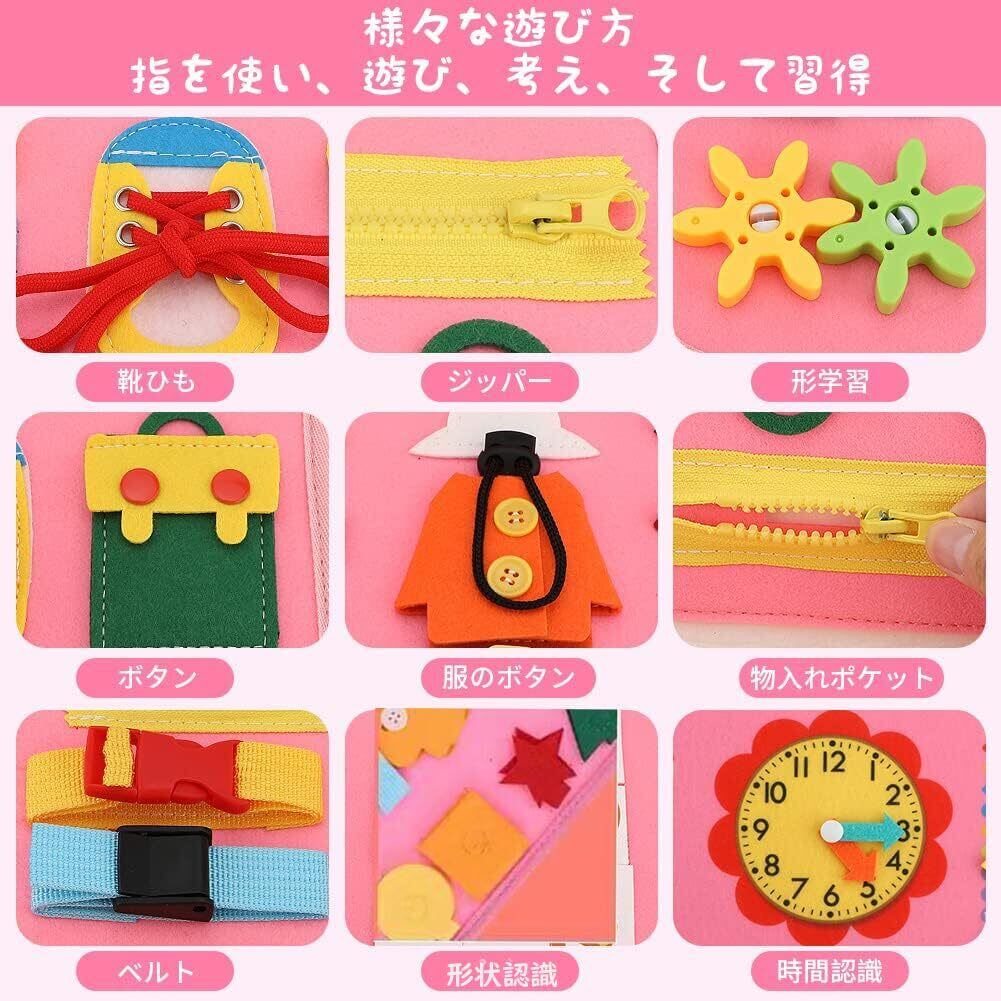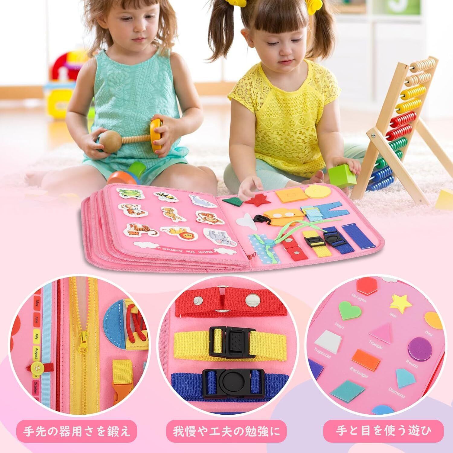 【 限定ブランド】モンテッソーリ玩具 ビジーボード 紐通しおもちゃ 1歳 誕生日プレゼント 0歳 1歳 2歳 3歳 4歳 5歳 もんてっそーり 入園祝い 布絵本 ビジーブック お着替えの練習 知育玩具 指先鍛錬 発達玩具 五感発育 フェルトおもちゃ 女の子 クリスマス ギフト 出産お祝い (ピンク)