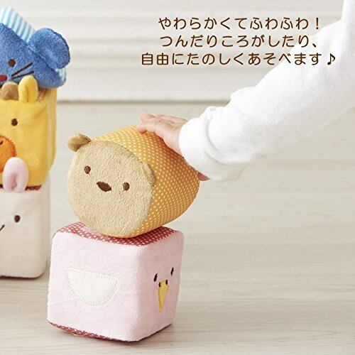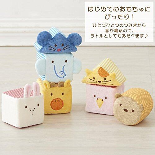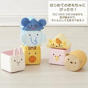 どうぶつさんを並べてみよう!あかちゃんの大好きがいっぱいつまった、やわらかつみき はじめてのおもちゃにぴったりなやわらか布製のつみき。ひとつひとつのつみきから音が鳴るので、ラトルとして単体で遊んだり、いないいないばあやごっこあそびをお楽しみいただけるのはもちろんのこと、つかむ、にぎる、ころがす、などの動作を通じて様々な感覚を養うこともでき、安全かつ楽しみながら、赤ちゃんの成長を促します。