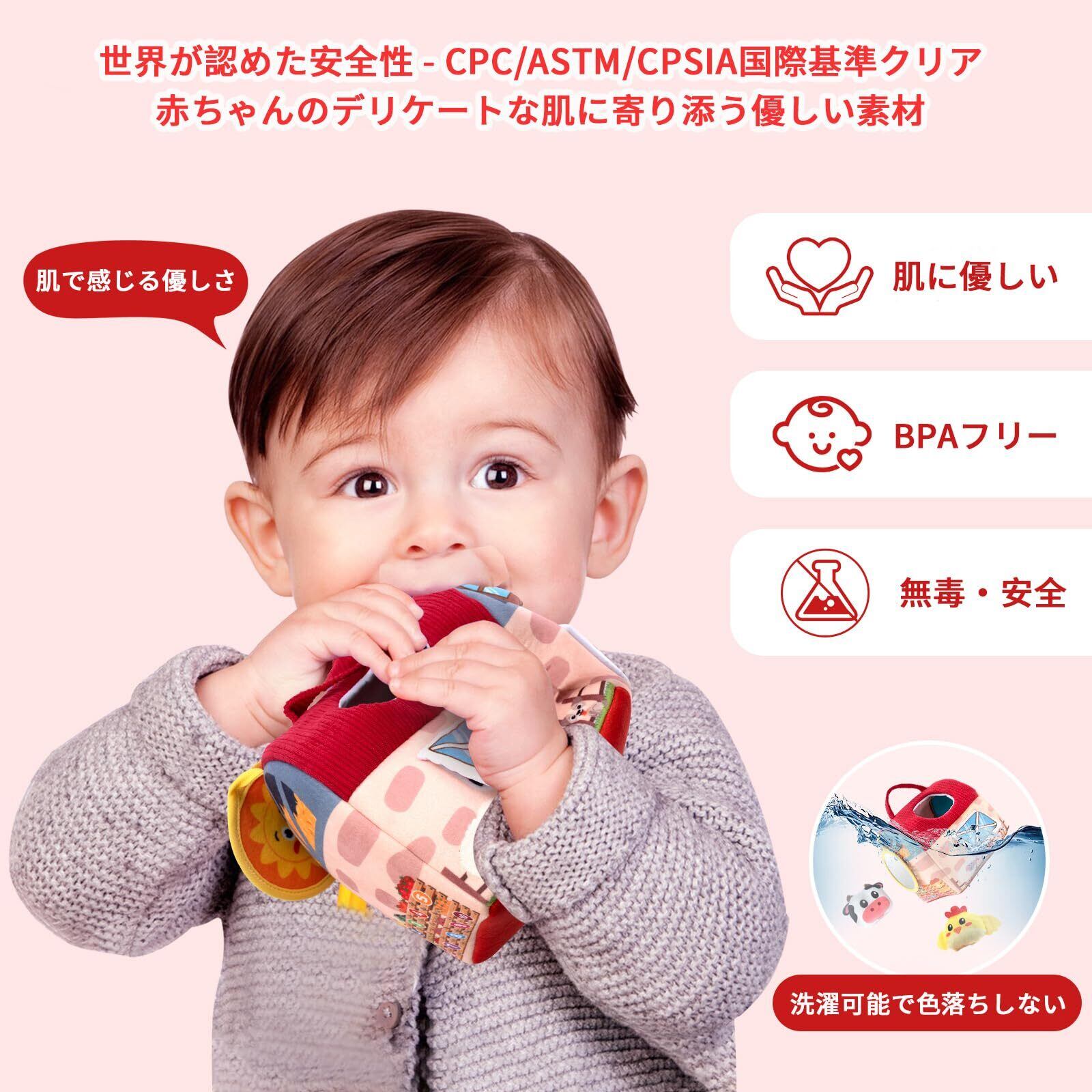 【安全設計で清潔に使える】FDA認証の安全素材を使用し、小さな部品は一切なし。防水加工で汚れを簡単に拭き取れ、滑り止め付きで安定します。手洗い・洗濯機(60℃まで)対応で、いつでも清潔を保てます。赤ちゃんが安心して遊べ、ママも嬉しい設計です。