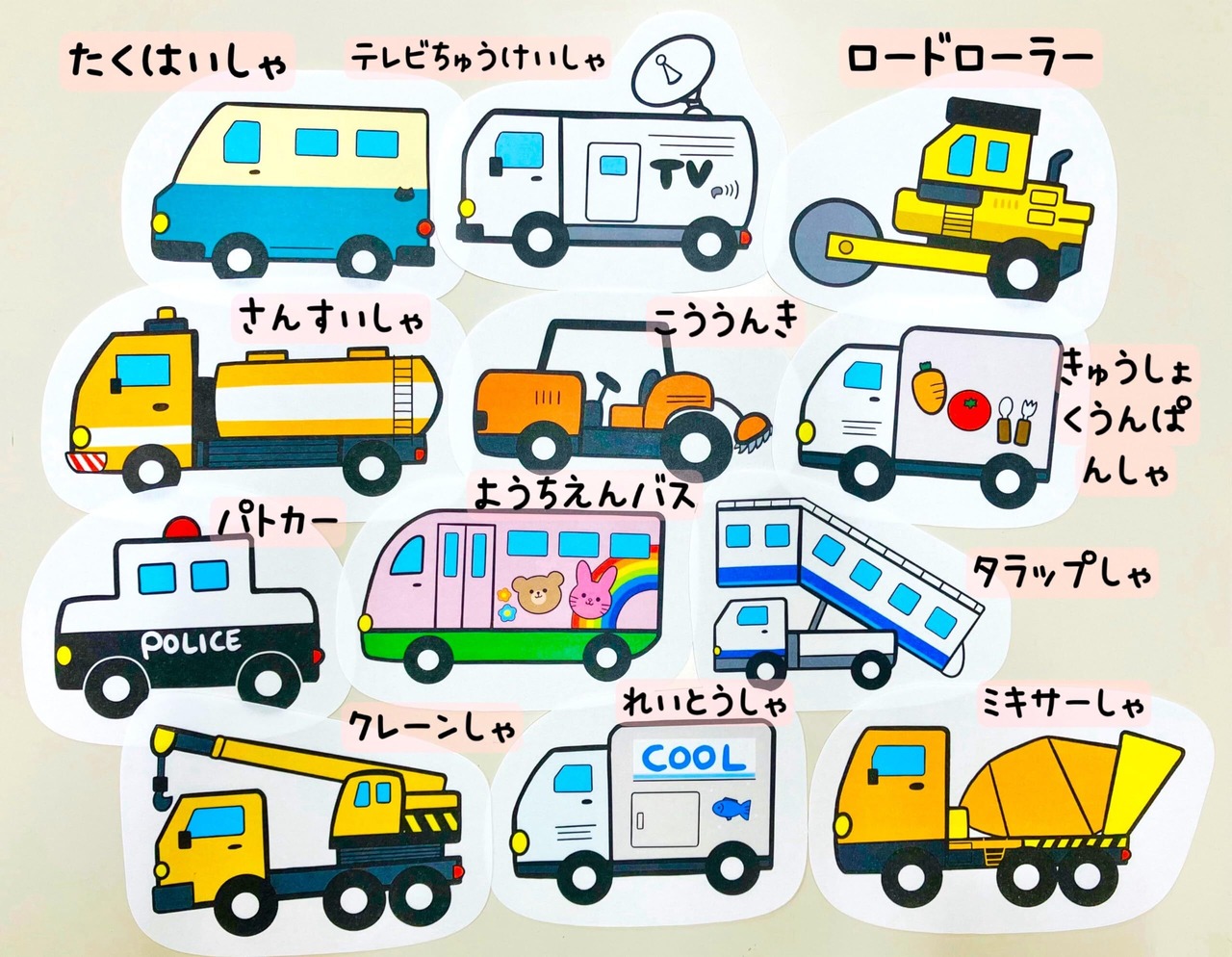 てくてくも® パネルシアター はたらくくるま 1番2番3番 3点セット 働く車 保育士 行事 (カット済み, M)