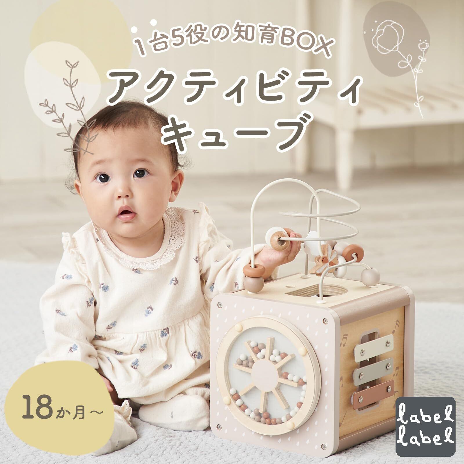 【新春セール】LabelLabel (レーベルレーベル) アクティビティキューブ 木製 おもちゃ ルーピング 型はめ 赤ちゃん 1歳 2歳 誕生日プレゼント 男の子 女の子 木のおもちゃ 知育玩具 (ラテ) | 無意味ステッカー