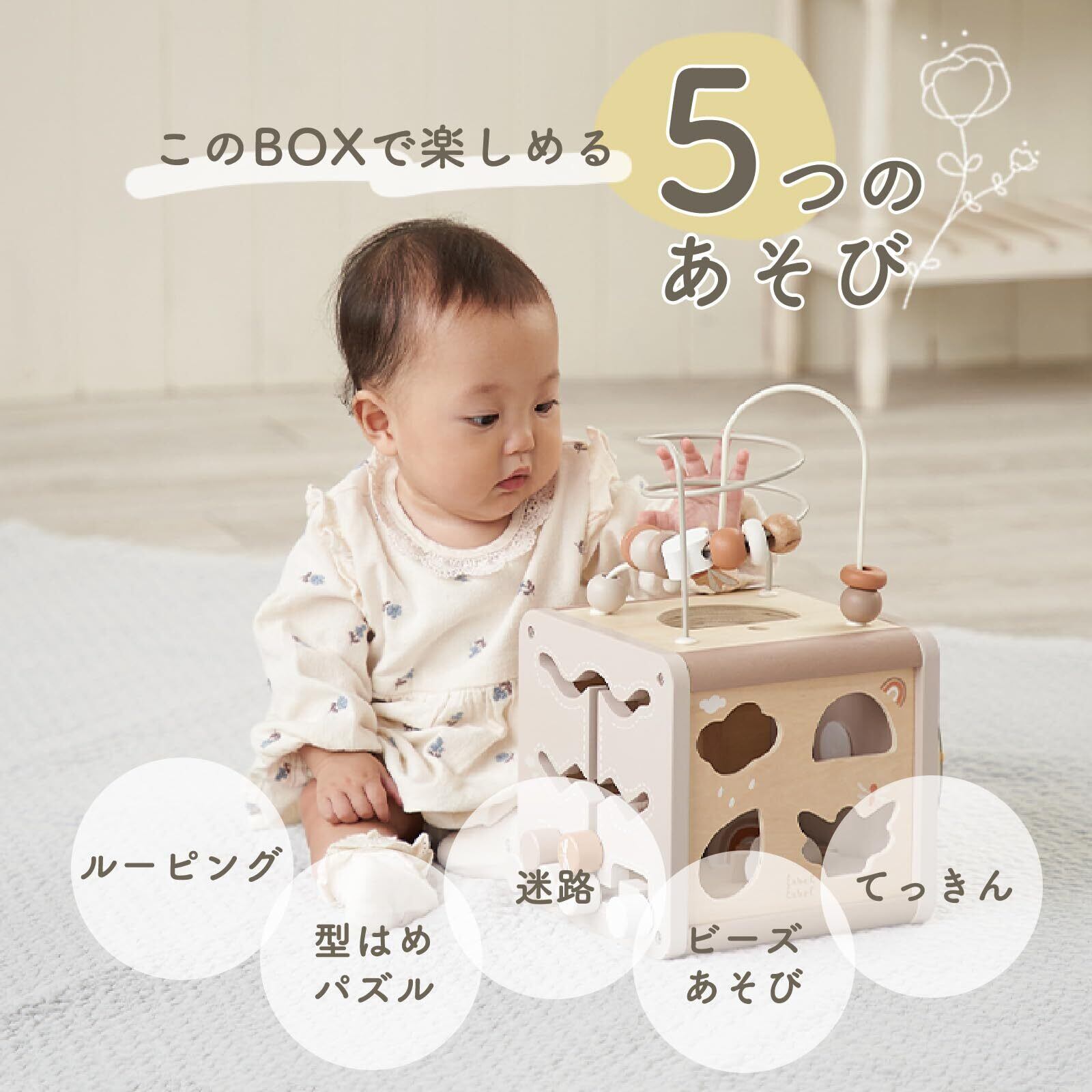 LabelLabel (レーベルレーベル) アクティビティキューブ 木製 おもちゃ ルーピング 型はめ 赤ちゃん 1歳 2歳 誕生日プレゼント 男の子 女の子 木のおもちゃ 知育玩具 (ラテ)