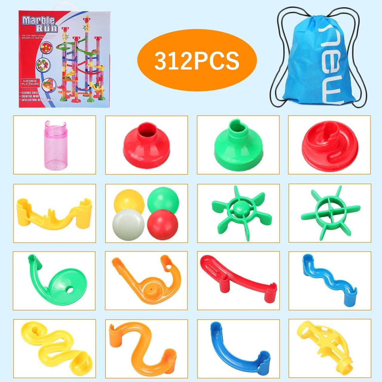 【大量セット】計312ピースの大量セット: 部品251個 (組み立てに利用できる有効な部品!) 、ボール63個 (3つの蛍光ボールも含まれています)、専用収納袋 (収納簡単)x1