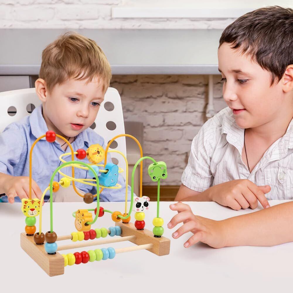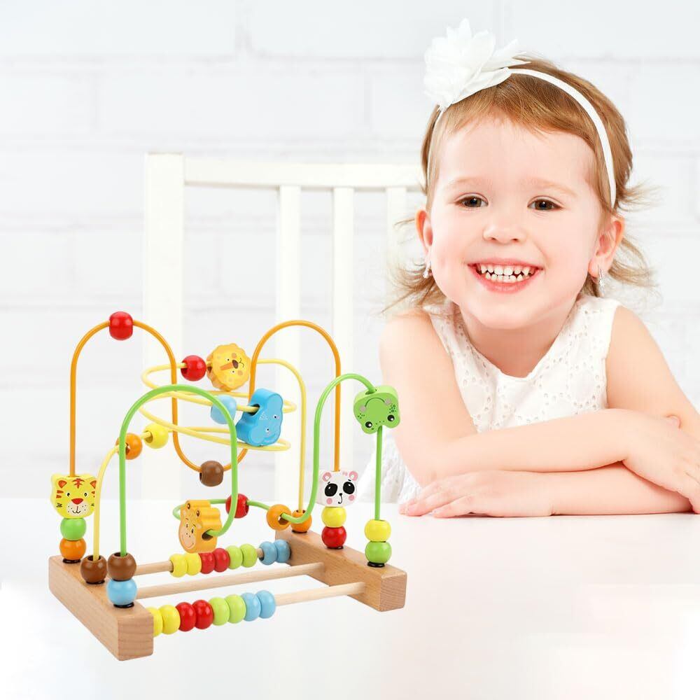 【高品質】:親子で楽しめる木製ビーズコースター!厳選されたブナ材を使用し、フルーツや動物デザインで赤ちゃんの手と目の協調力を育み、知育に役立ちます。