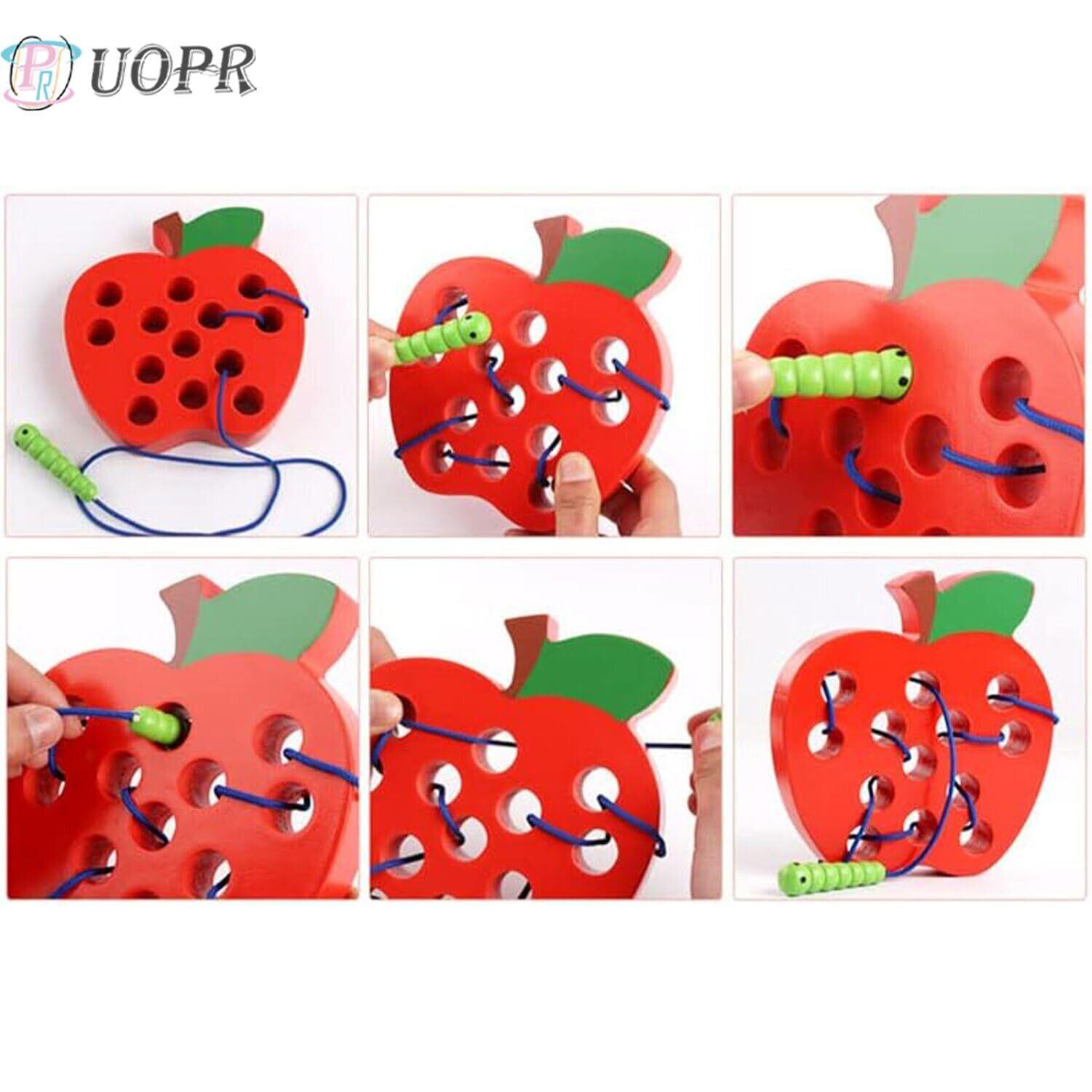 UOPR ひもとおし おもちゃ 果物 青虫 りんご迷路 幼児 木製 早期 指先訓練 紐通しおもちゃ 知育玩具 子どもの思考力 女の子 男の子 誕生日 入園祝い クリスマス プレゼント