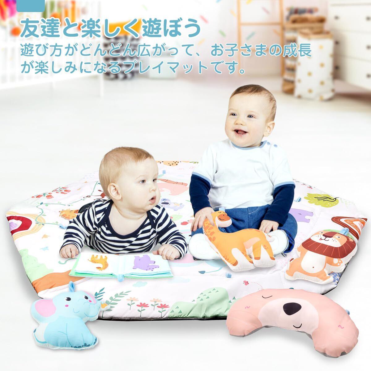 REMOKING ベビージム ベビープレイマット 赤ちゃん おもちゃ 動物の形 枕 厚み (六角形)
