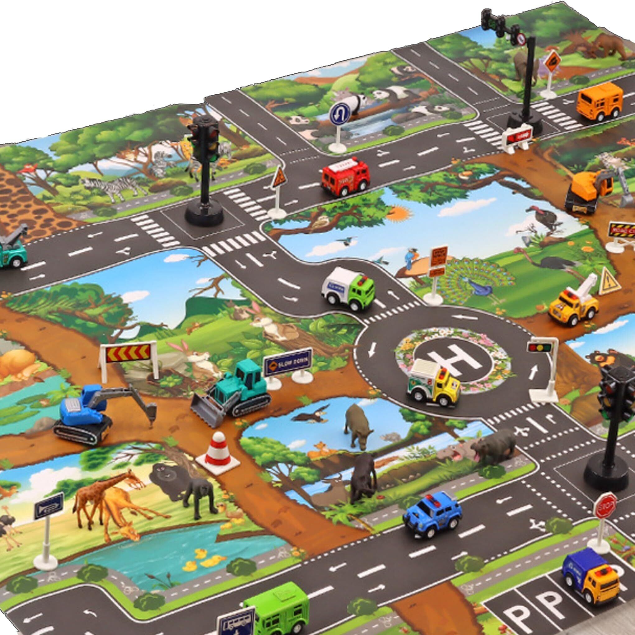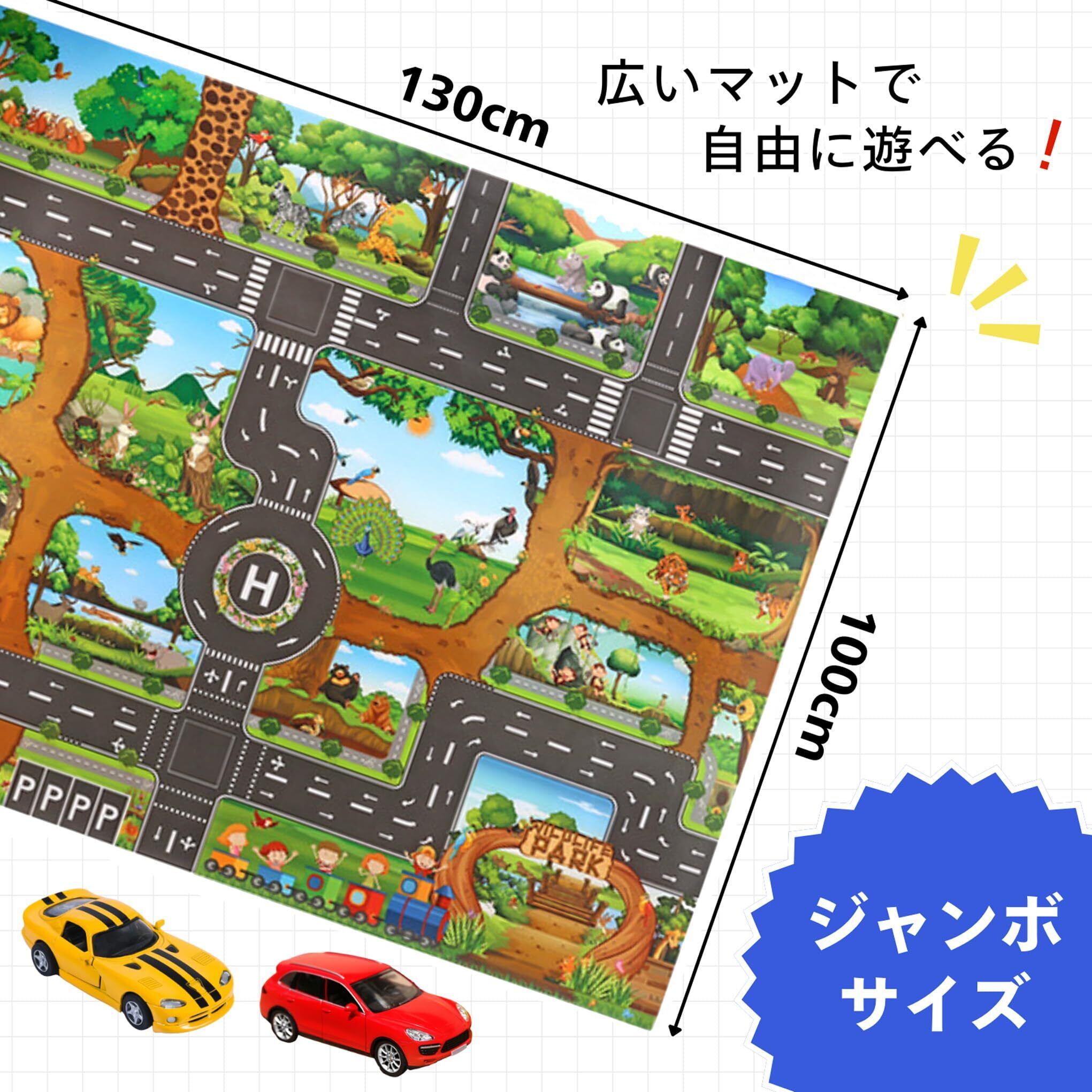 Percy’s Caravan プレイマット ジャンボ 大型 道路 交通 車 マップ シート ミニカー 知育 130×100 (サファリパーク)