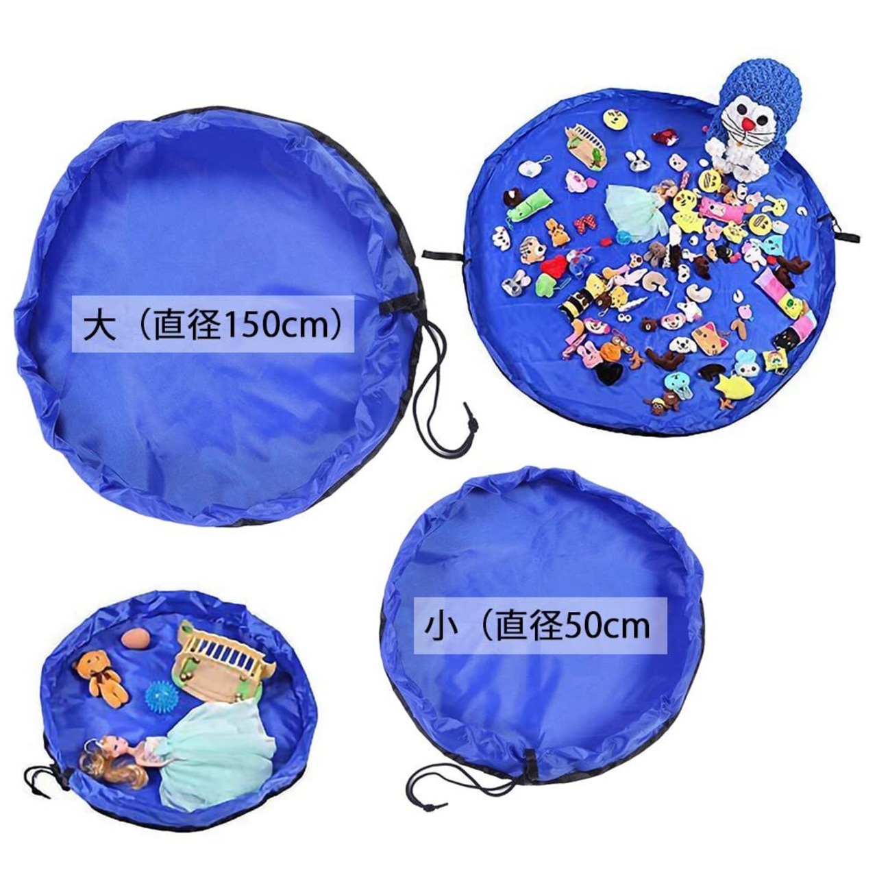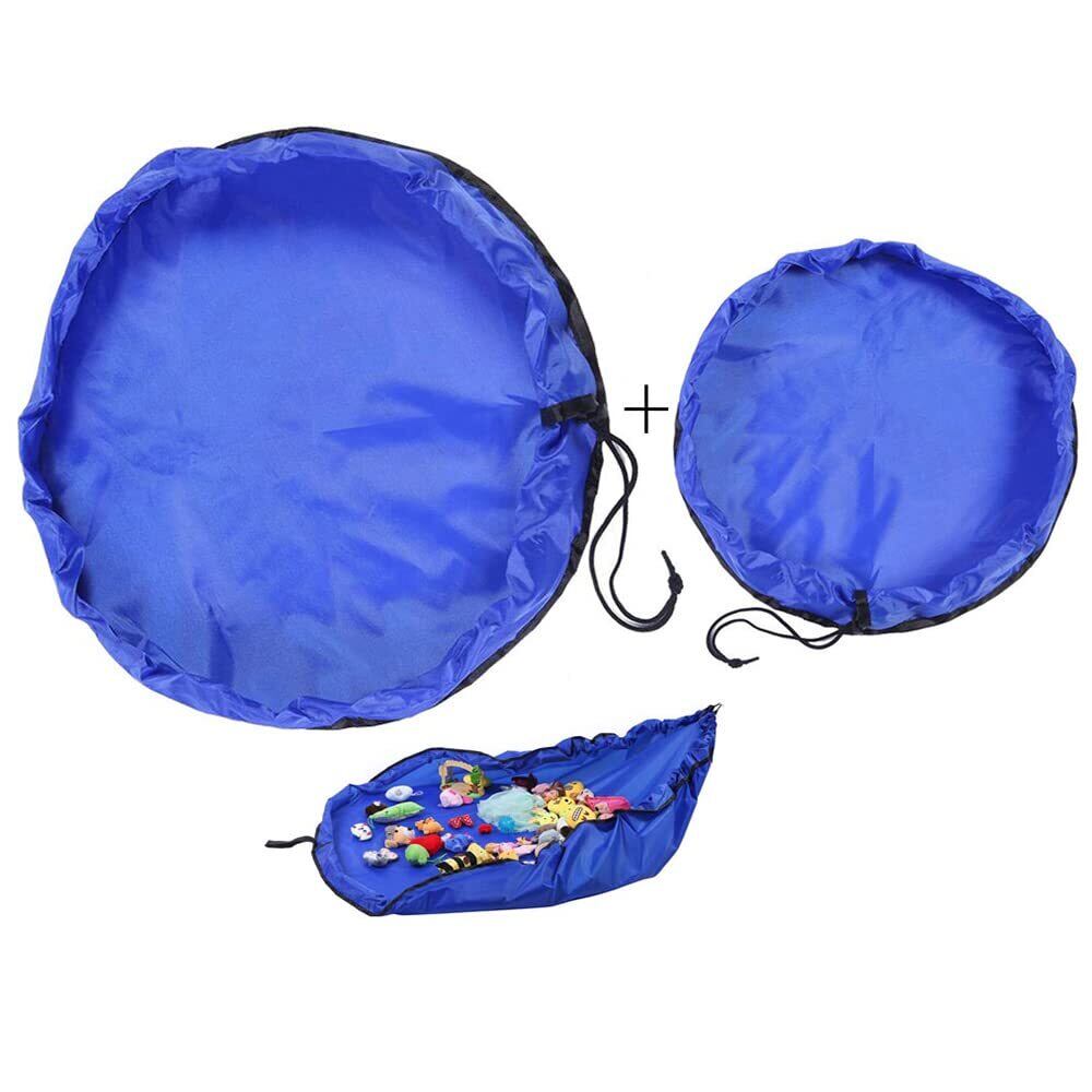 Hymyily おもちゃ収納袋 2点セット(大+小) 子どもプレイマット 子供たちはマット 玩具 積み木 片付け 折り畳み式 お出かけに便利 多用途 お片付け簡単 超大防水 (ブルー 大+小)
